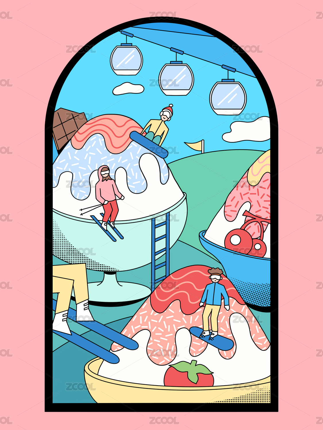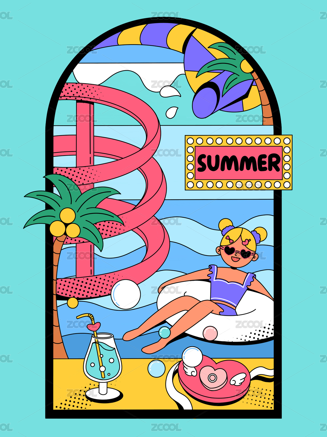線性插畫水上樂園