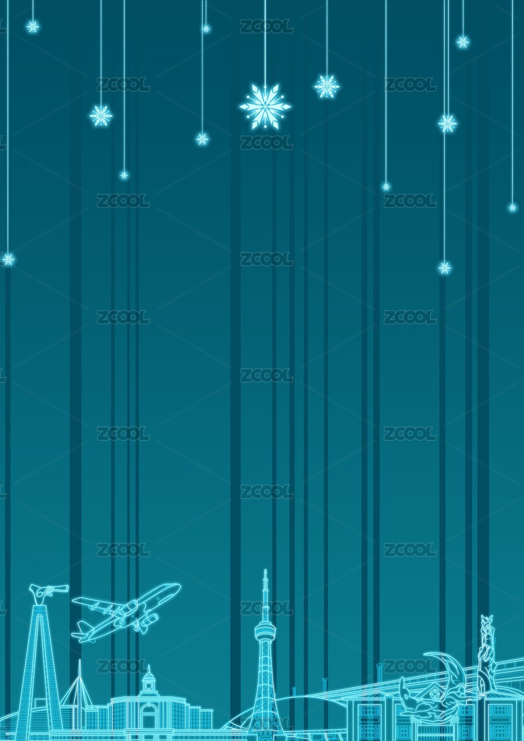 長春城市地標建筑發(fā)光線性插畫