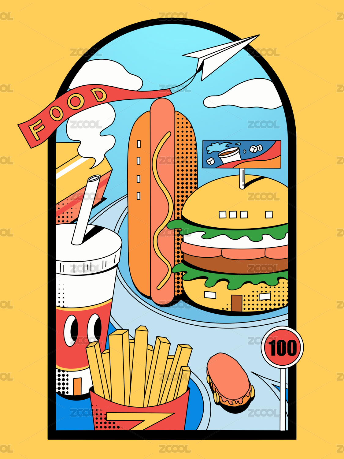 線性插畫美食城市