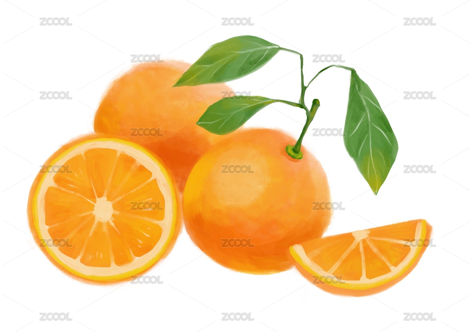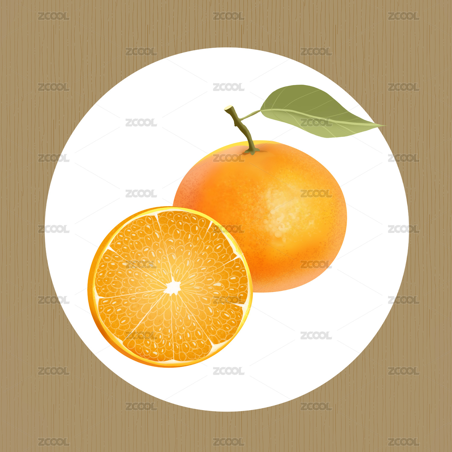 果凍橙手繪插畫橙子