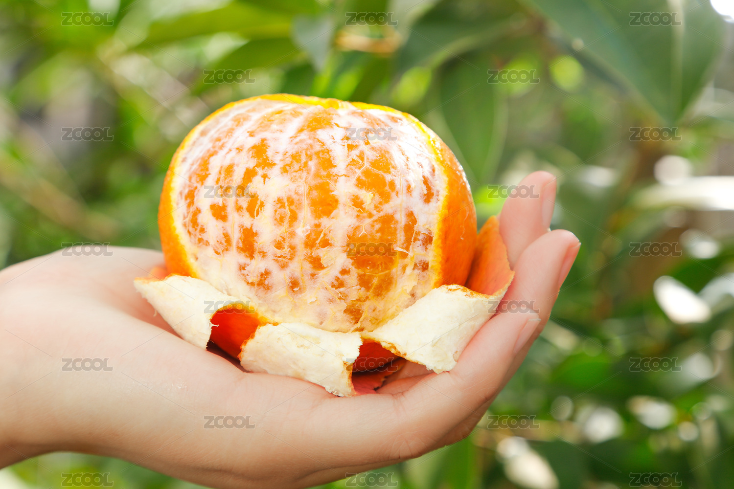 手上拿著剝開半邊的四川愛媛38號果凍橙