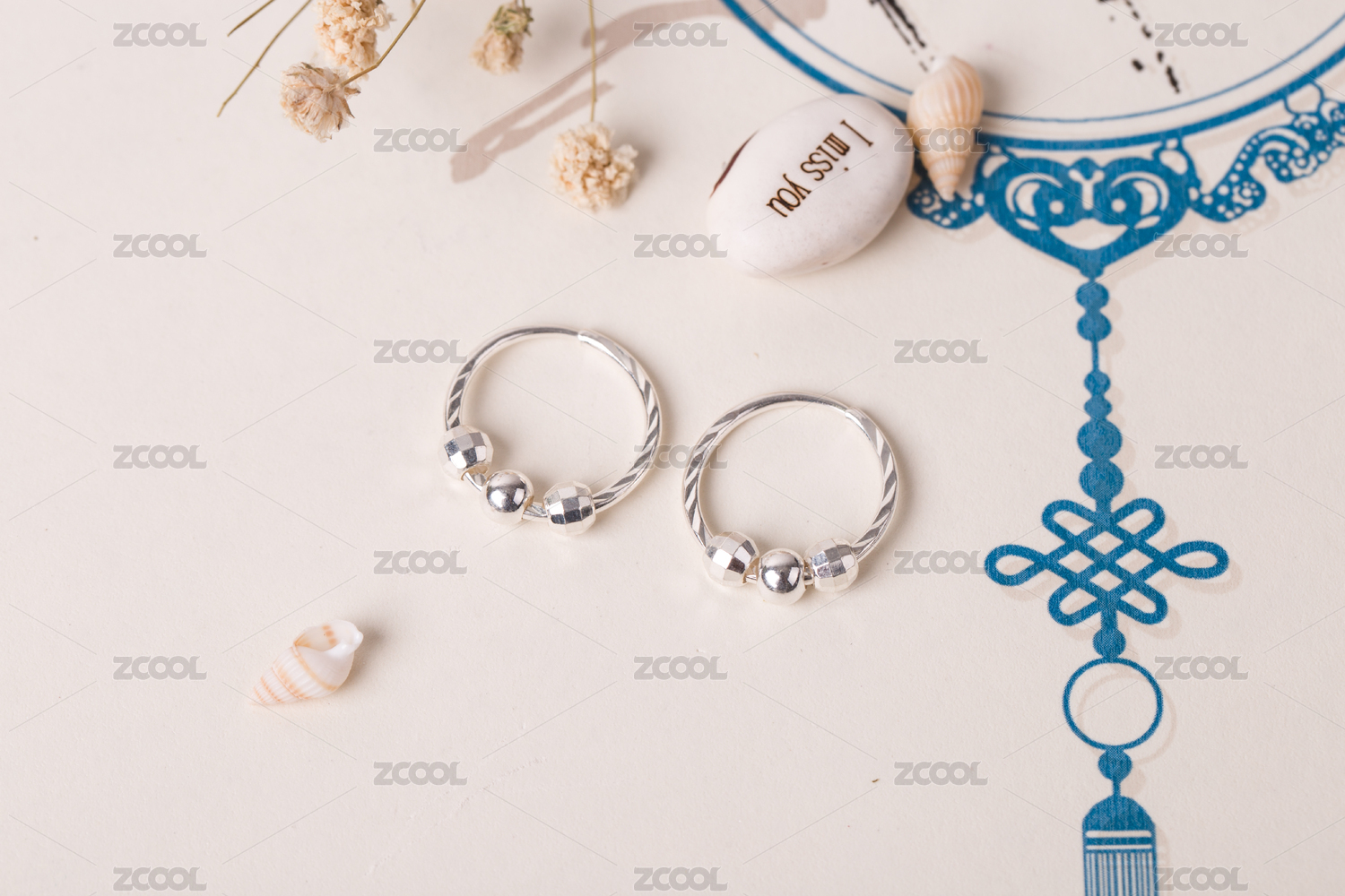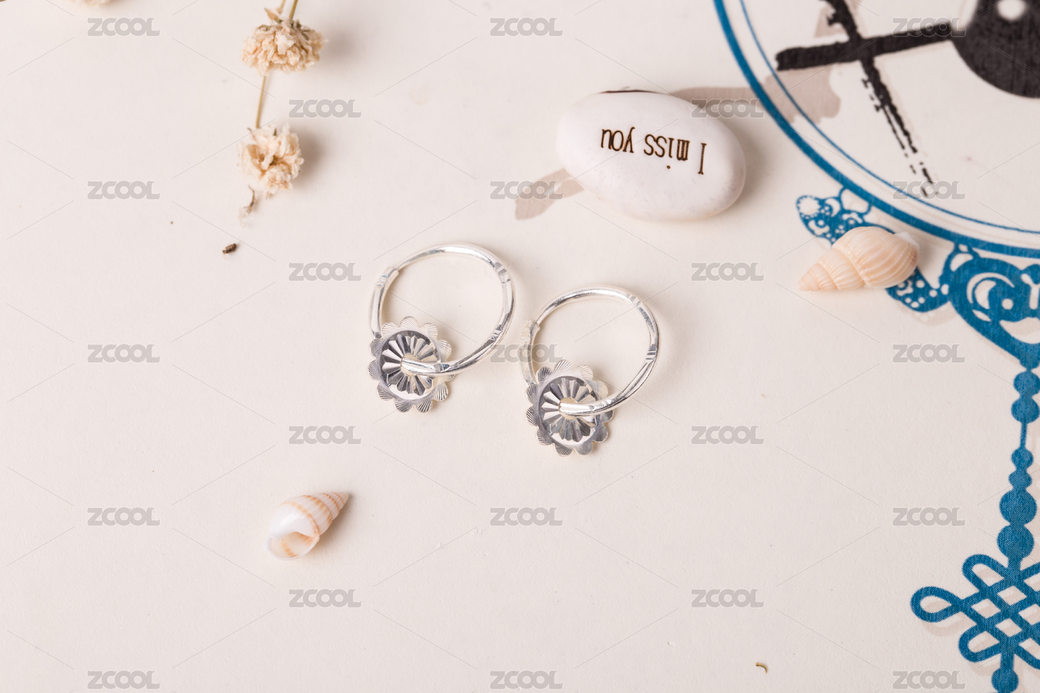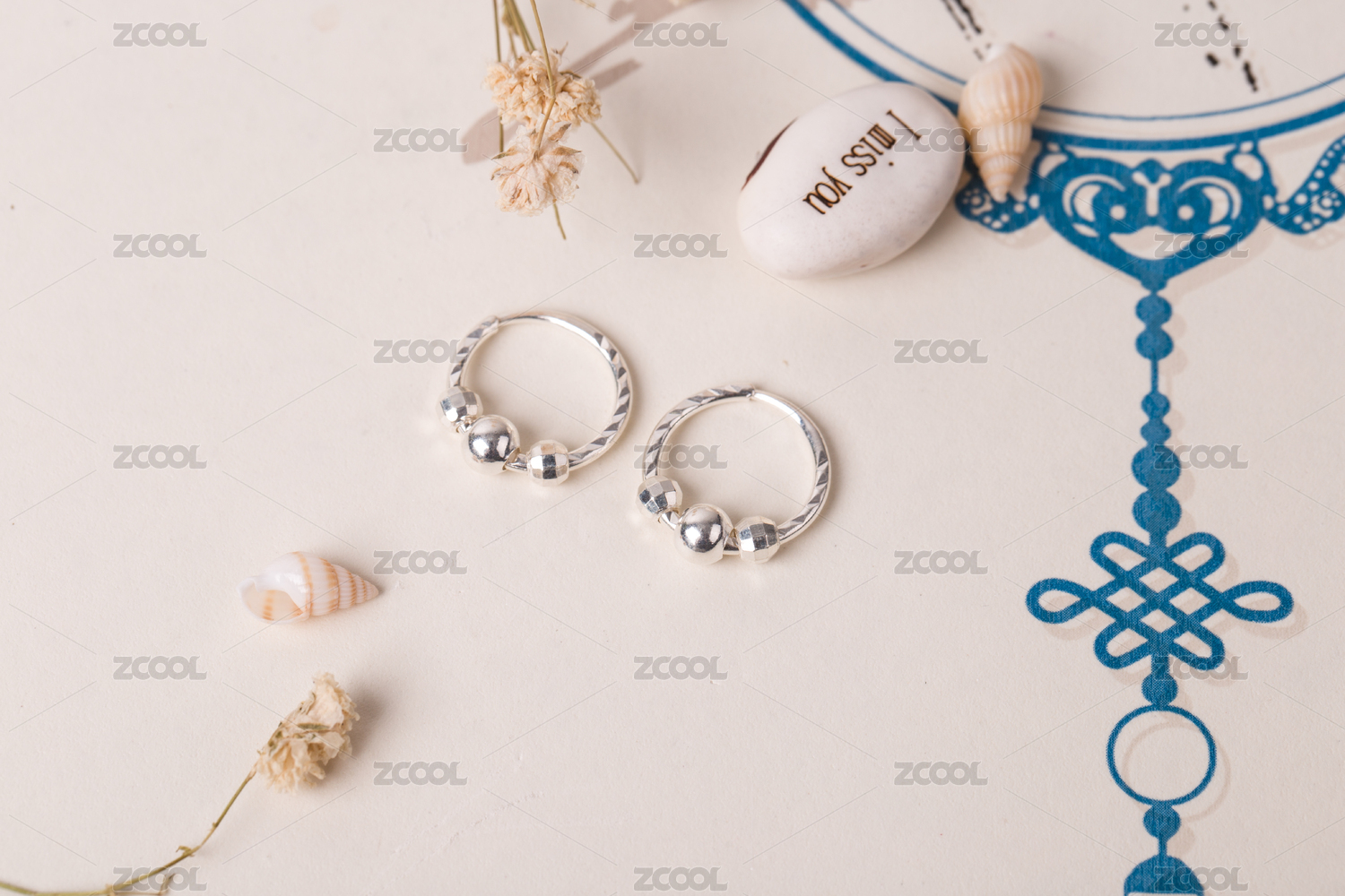 銀耳釘耳飾放在清新唯美的背景中