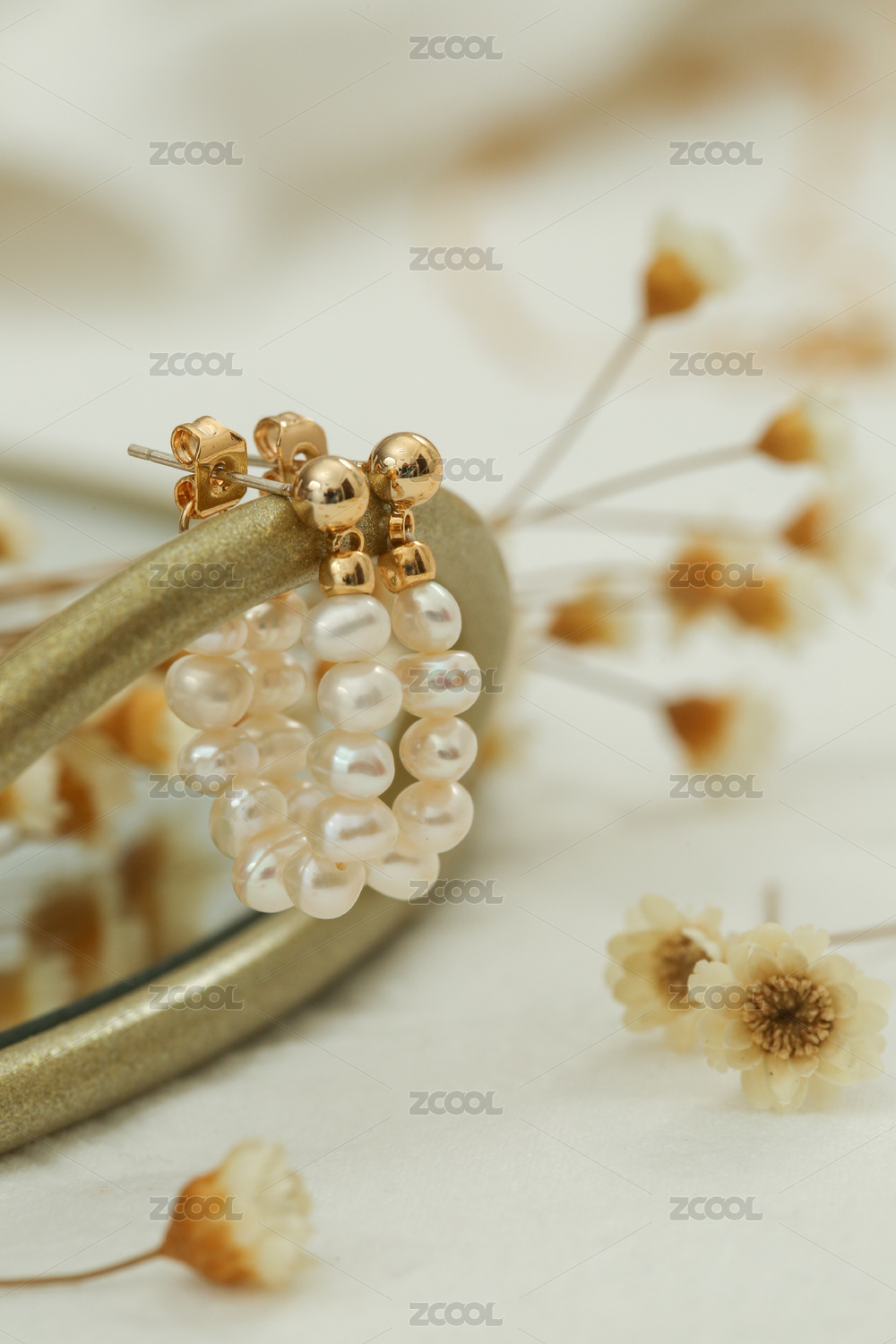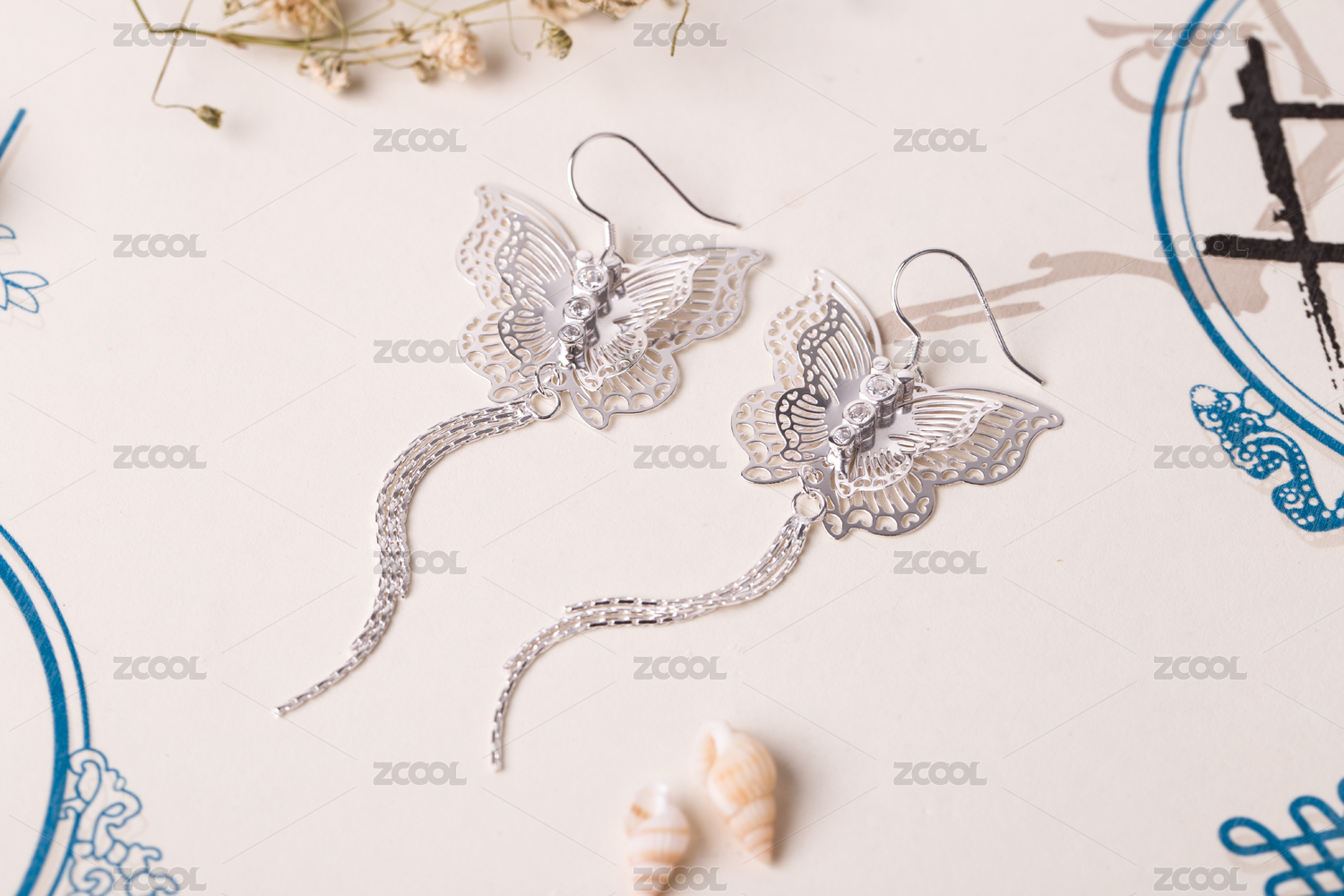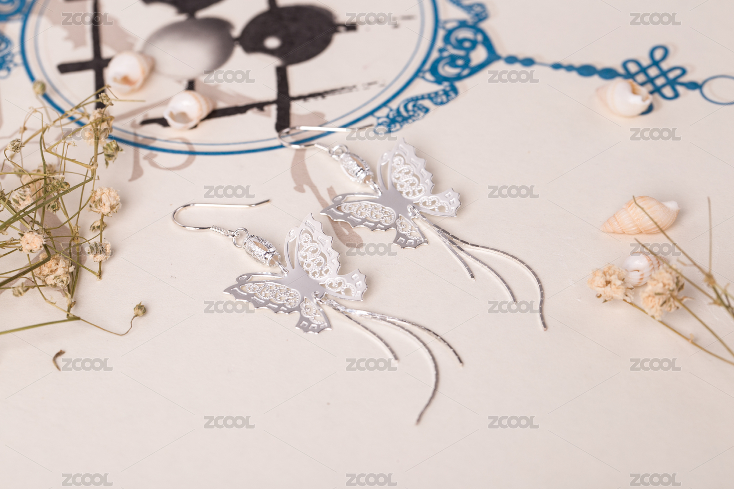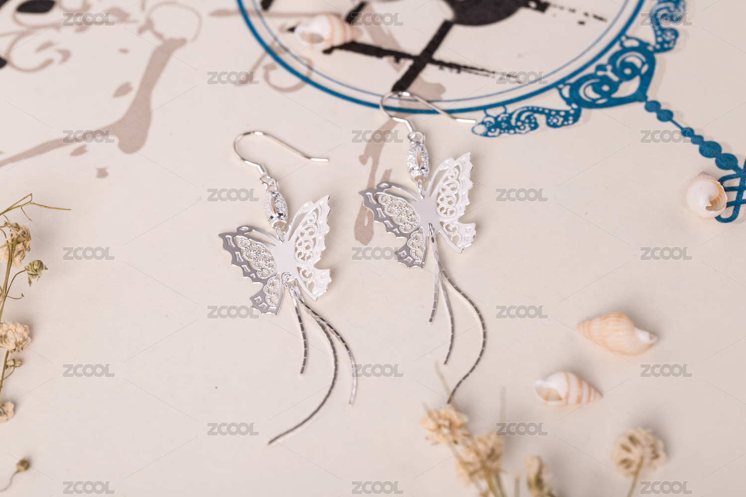 銀耳釘耳飾放在清新唯美的背景中