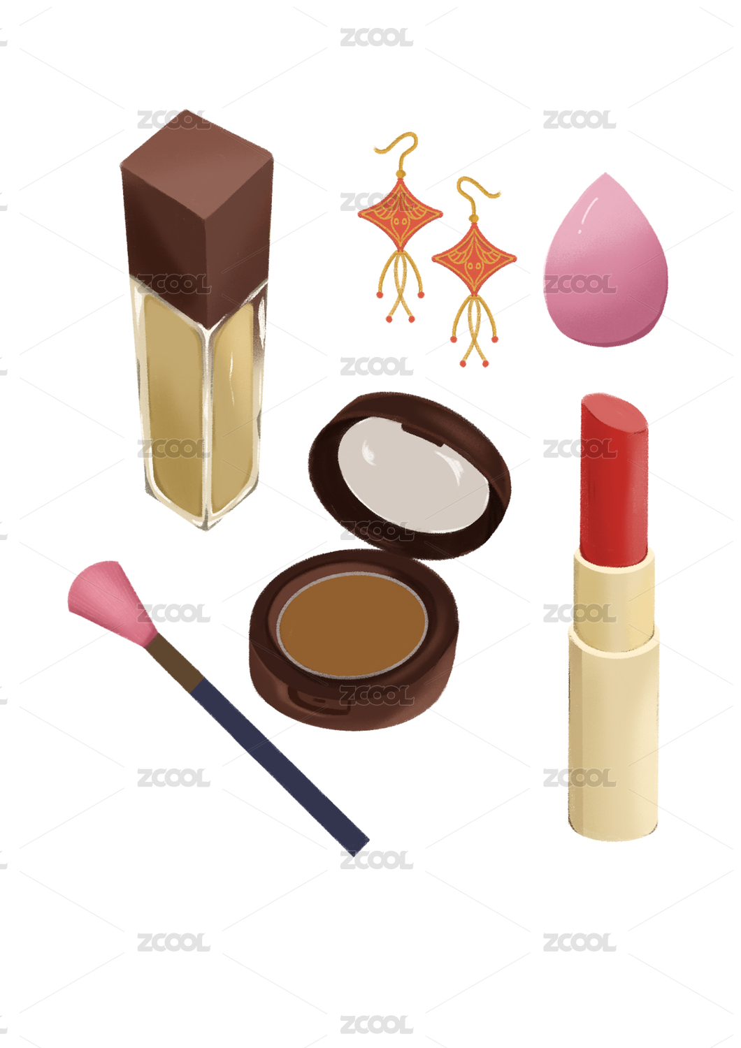 化妝品美妝美容耳飾耳環(huán)女生情人節(jié)肌理插畫