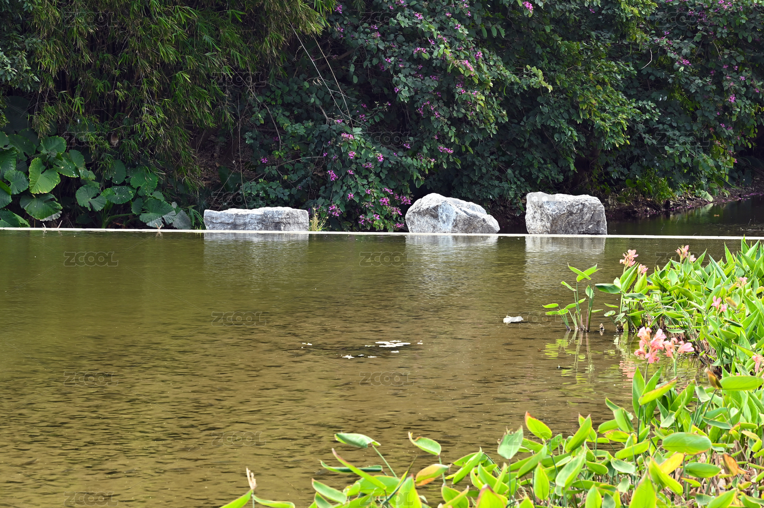 中國(guó)湖北京山美人谷碧潭和樹林自然景觀