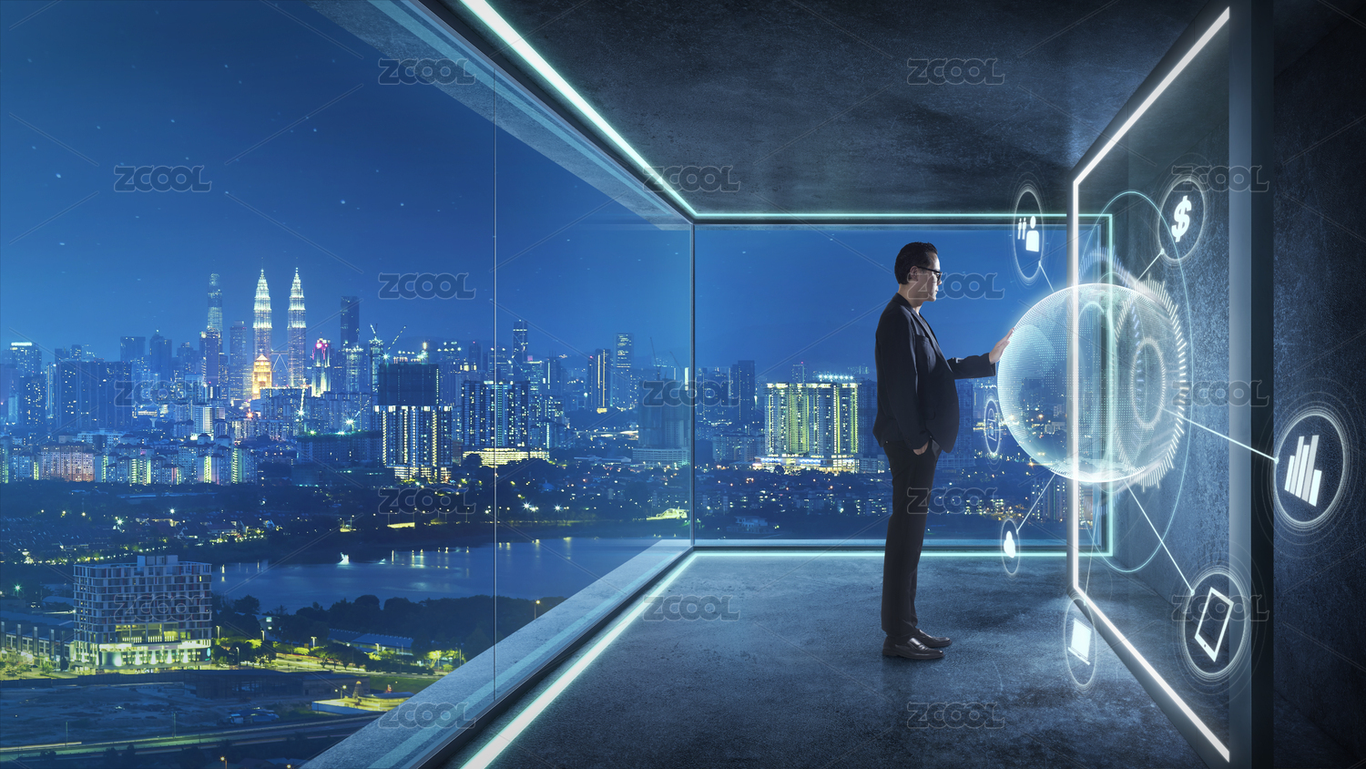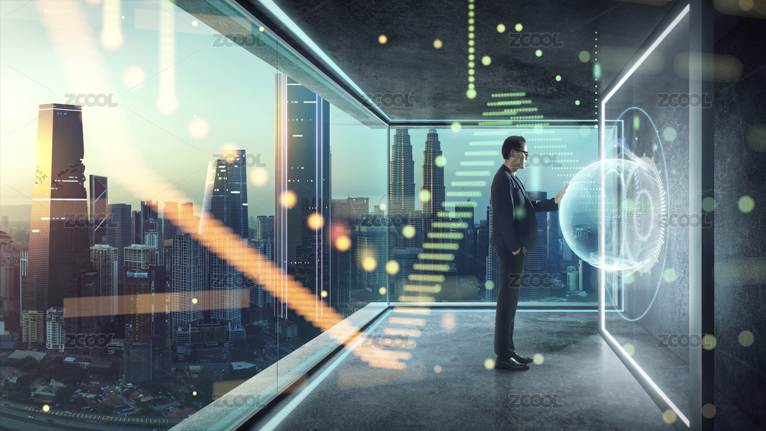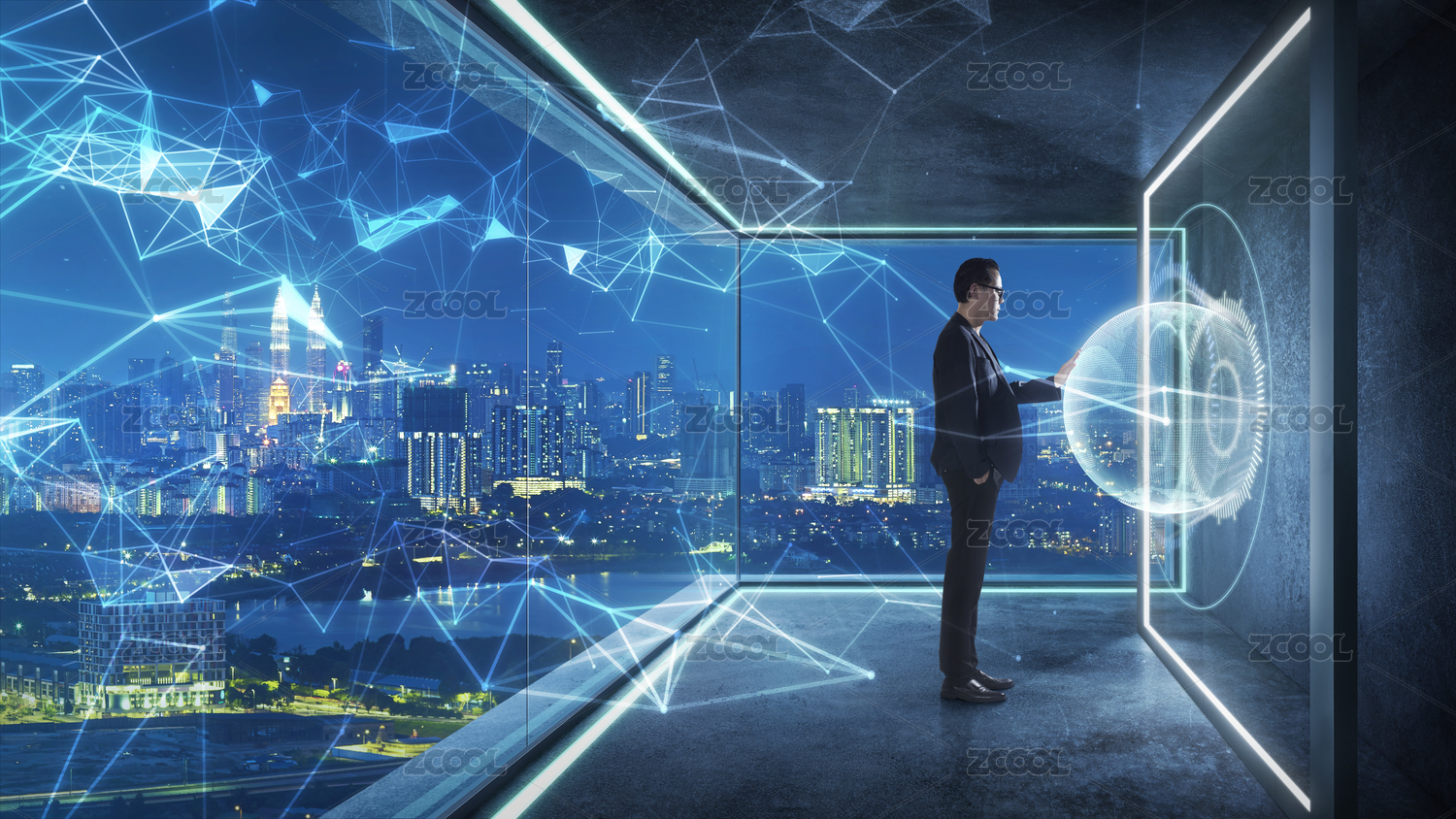 商人 使用3D虛擬屏幕,未來的業(yè)務(wù),技術(shù),互聯(lián)網(wǎng)和社交網(wǎng)絡(luò)技術(shù)的概念。