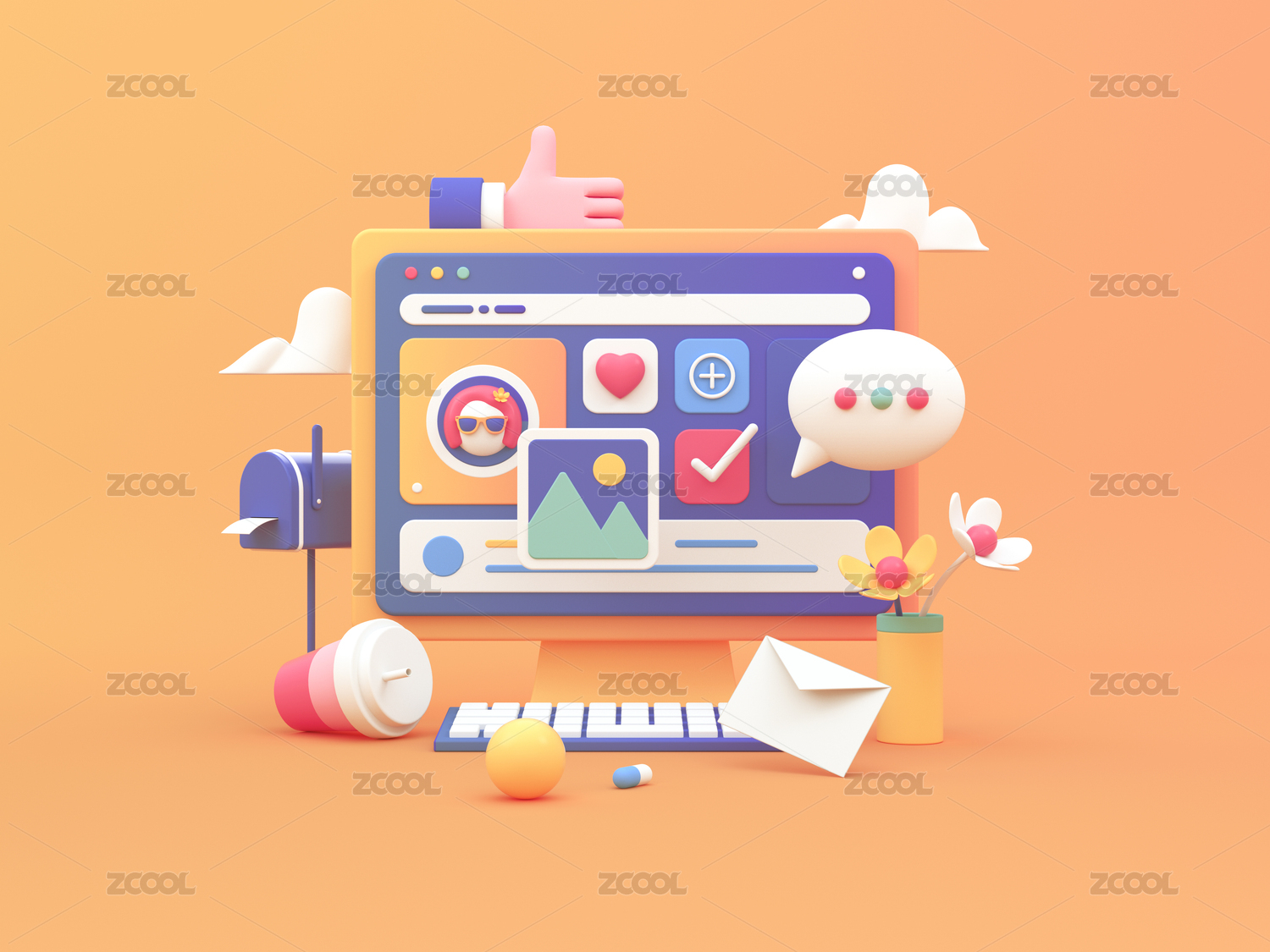 社交網(wǎng)絡(luò)3D插畫