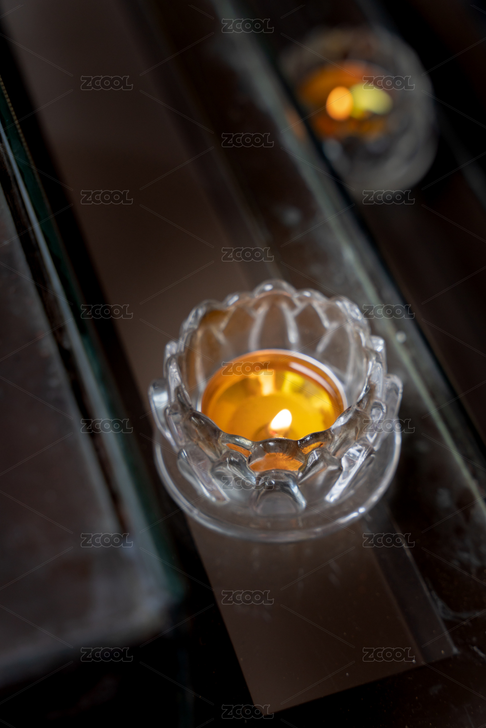 石座玻璃燭臺(tái)中的燃燒蠟燭