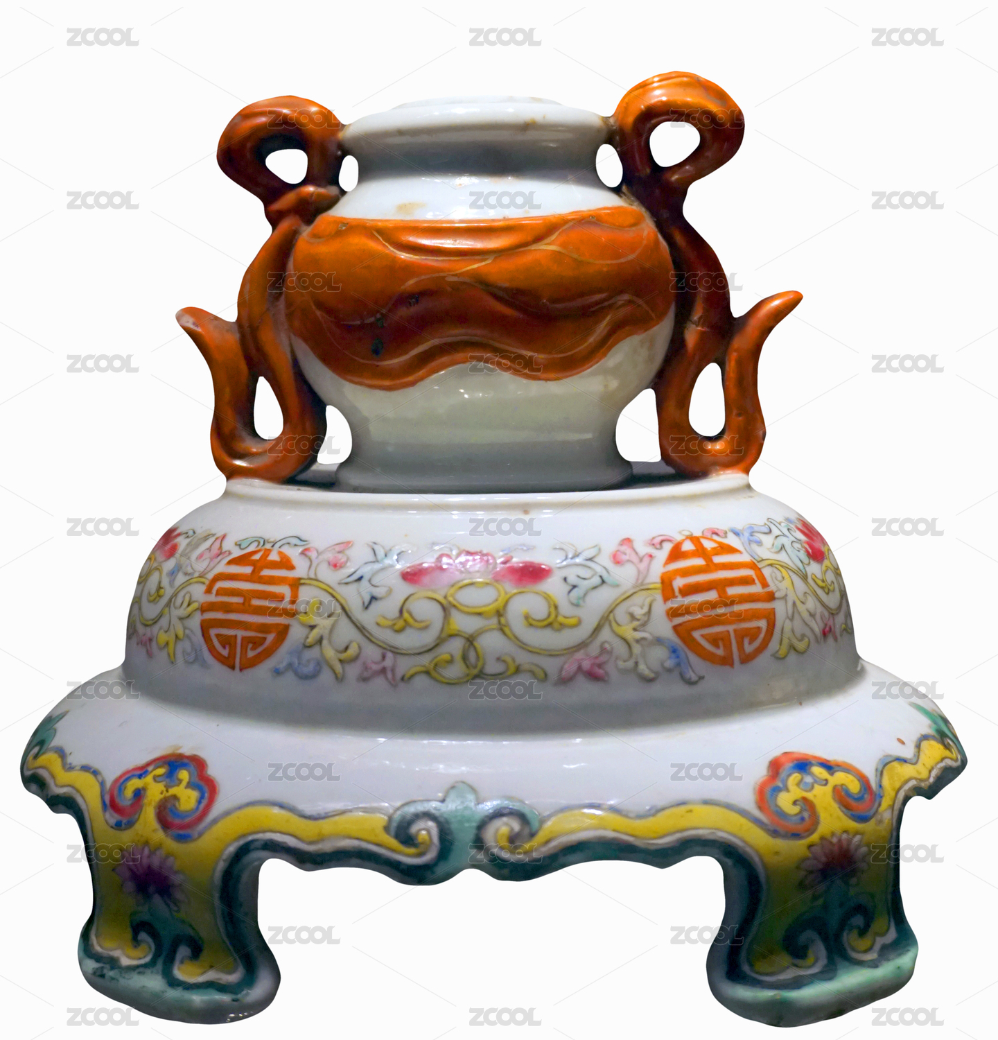 清末民初老物件照明燈具 粉彩瓷燭臺(tái)
