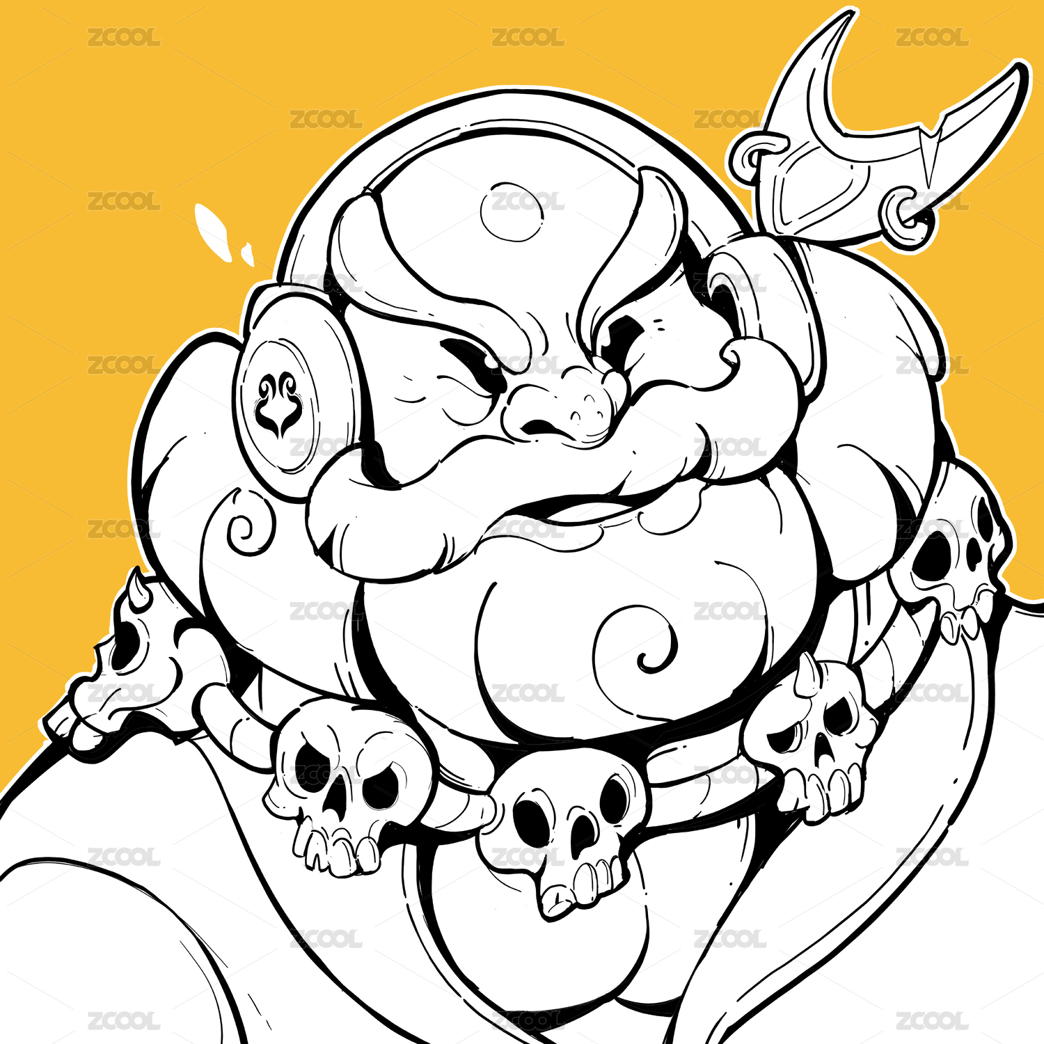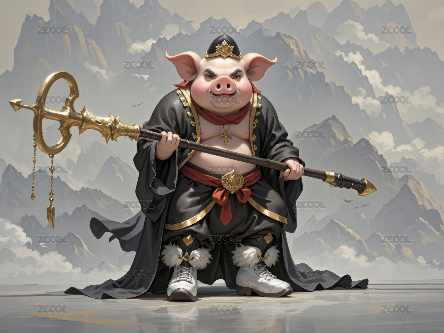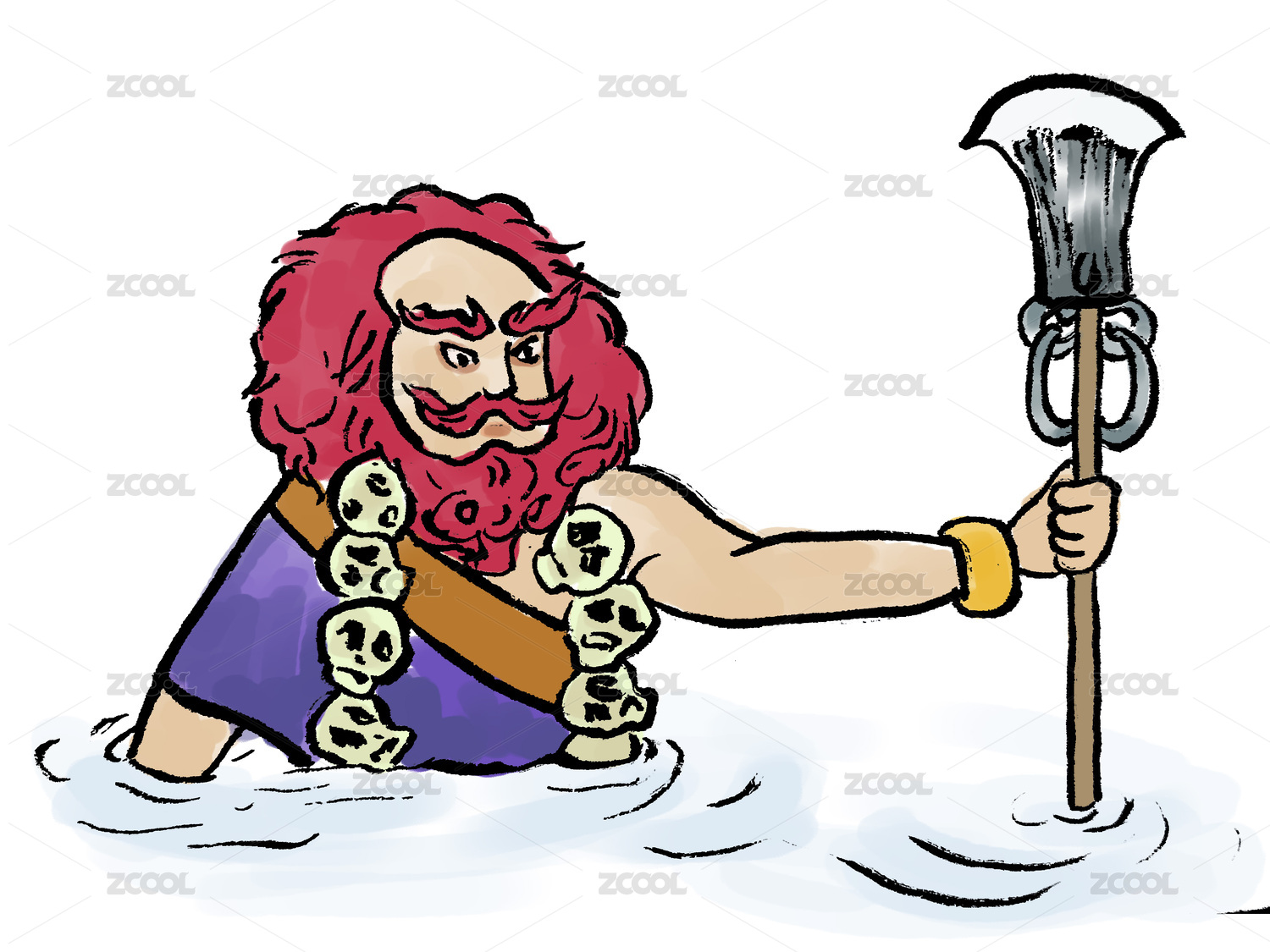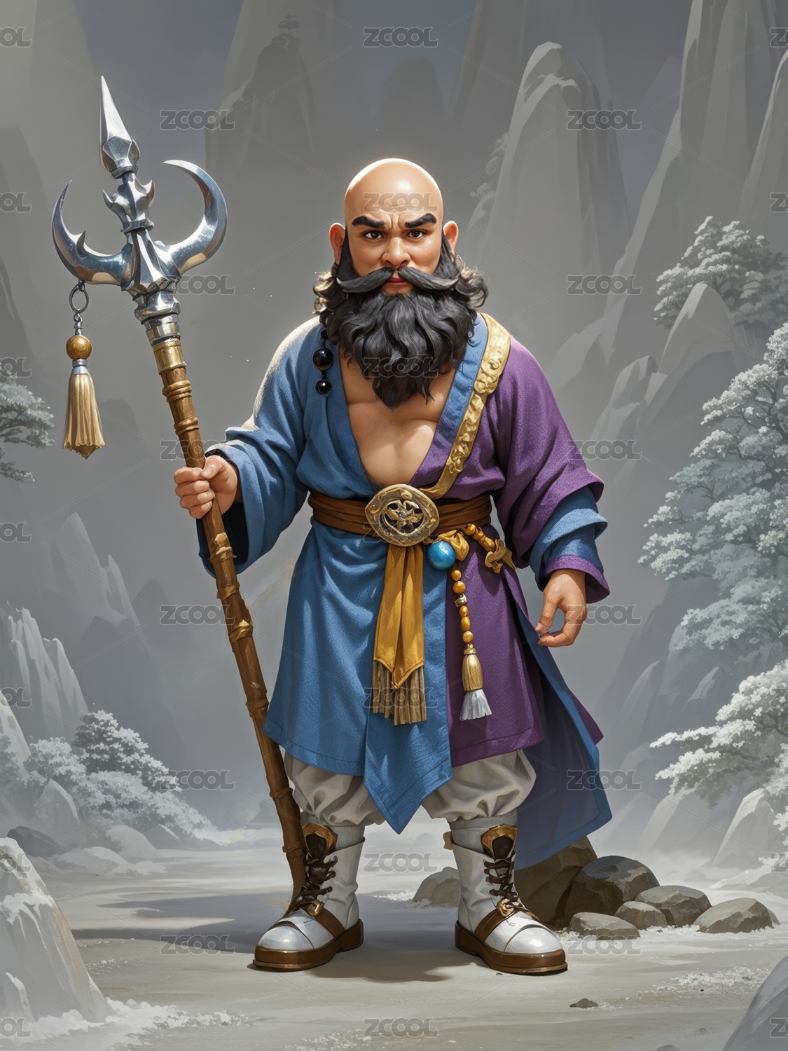 西游記卡通形象插畫-“沙僧”站立疑惑表情