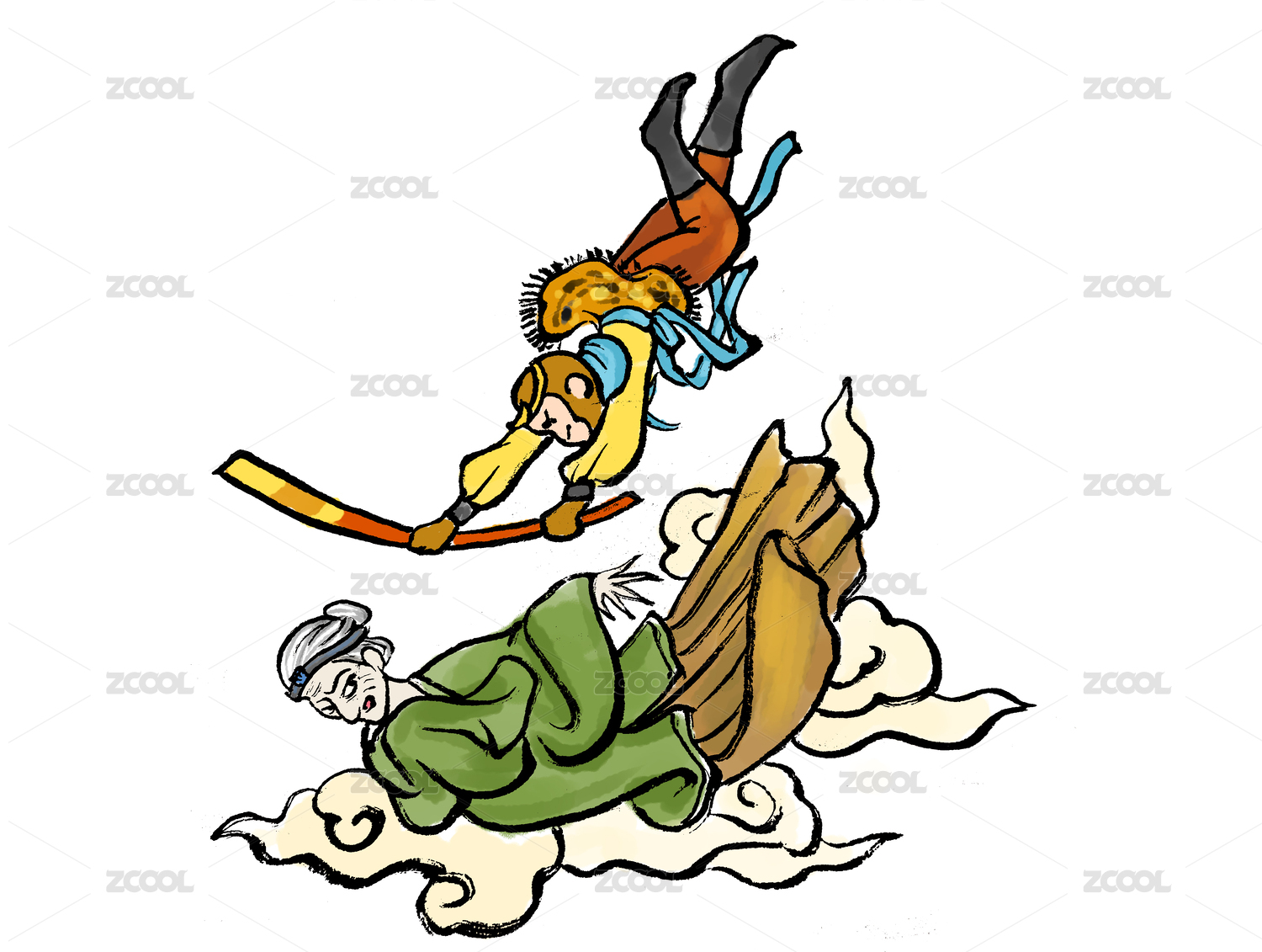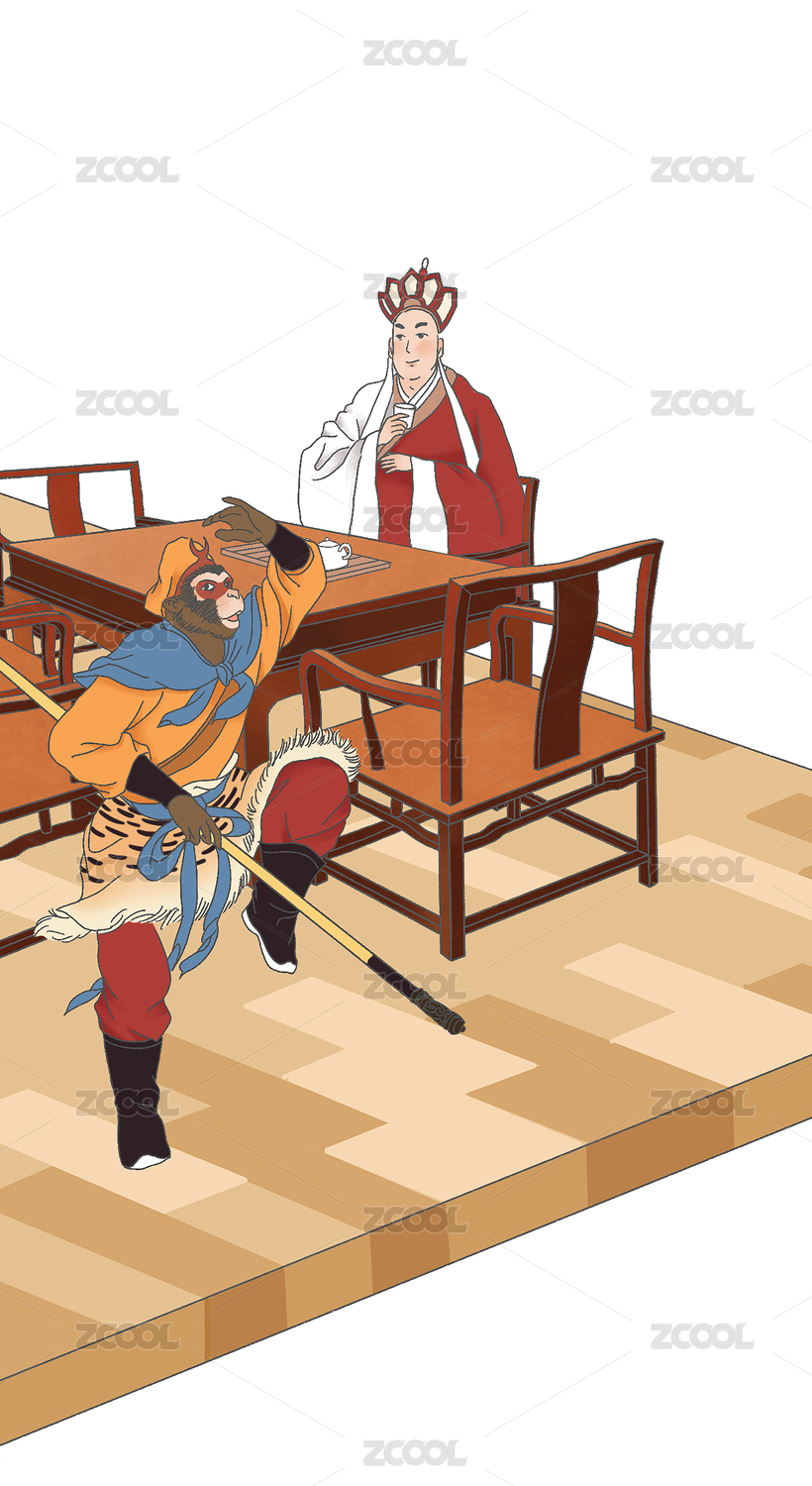 手繪卡通西游記人物孫悟空插畫