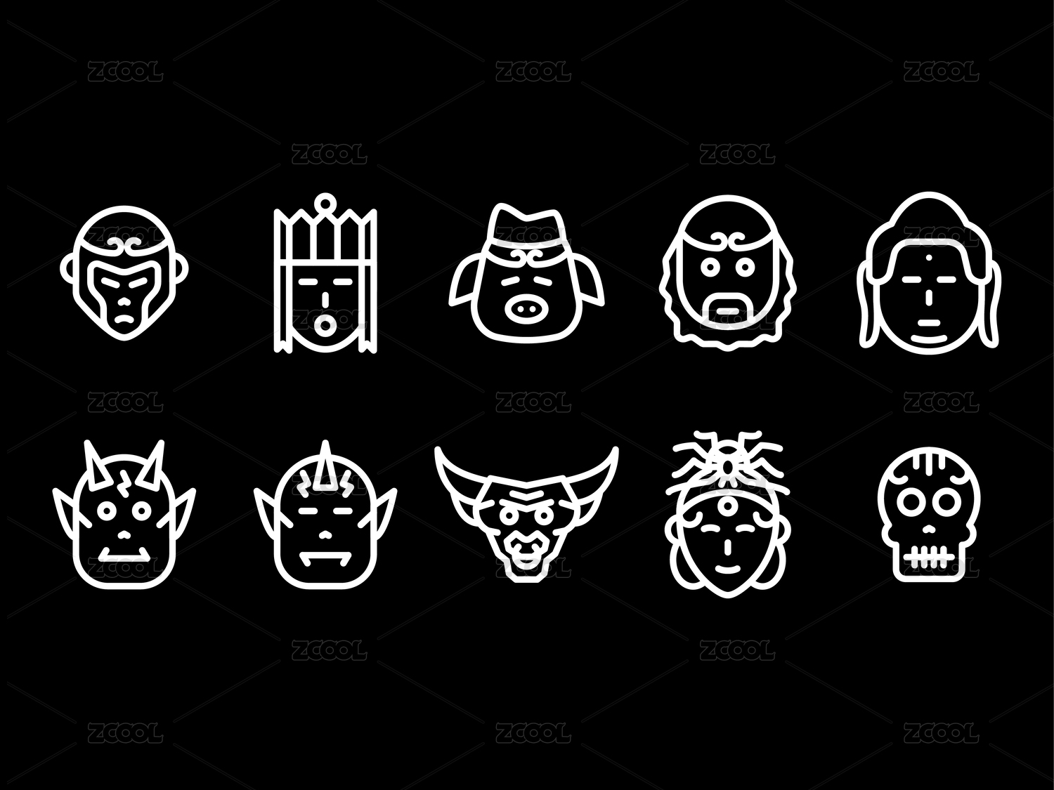 線性西游記角色矢量圖標(biāo)