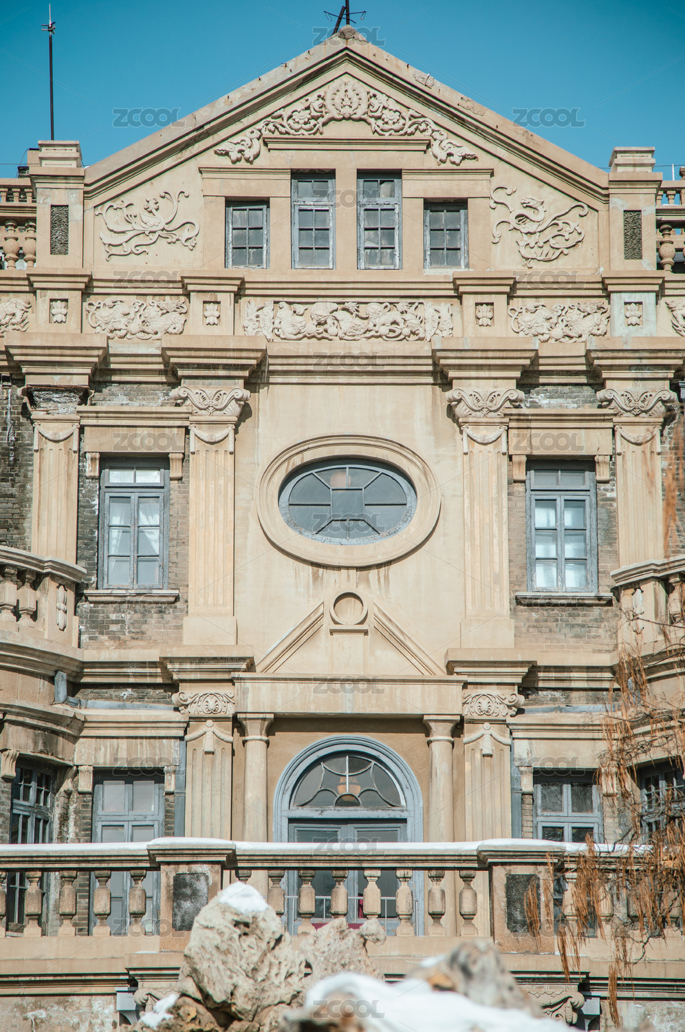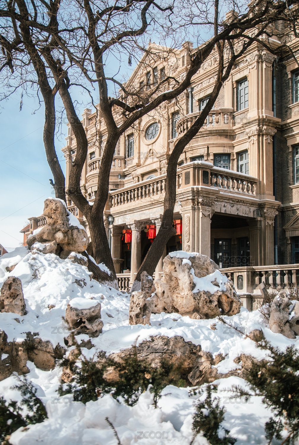 沈陽張氏帥府博物館大青樓老建筑冬日雪景