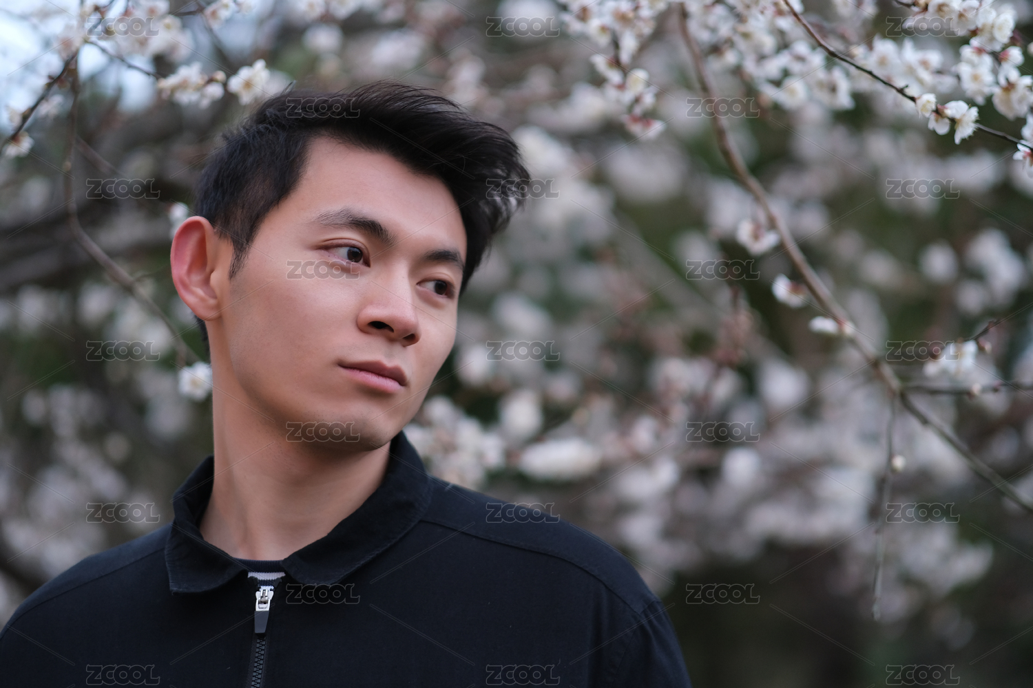 英俊帥氣的中國(guó)年輕帥哥和春天的梅花
