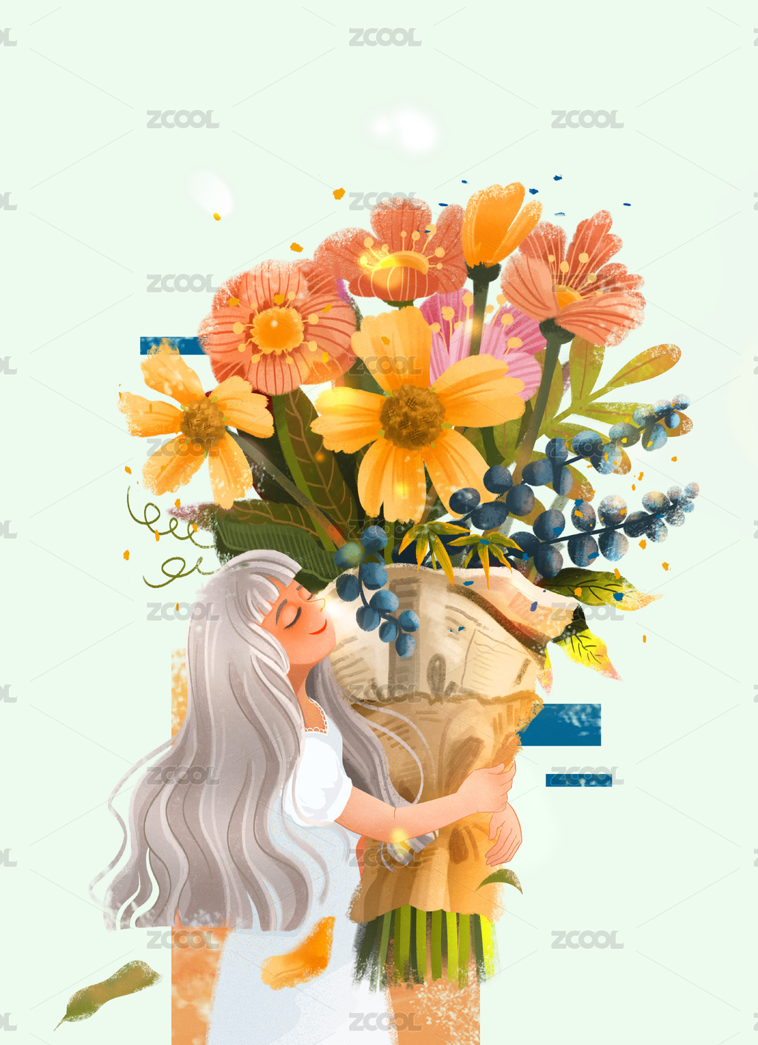 婦女節(jié)清新淡雅的感恩花束包裝矢量素材