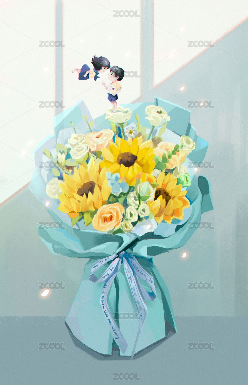 教師節(jié)感恩節(jié)花束裝飾元素慶祝節(jié)日花卉背景