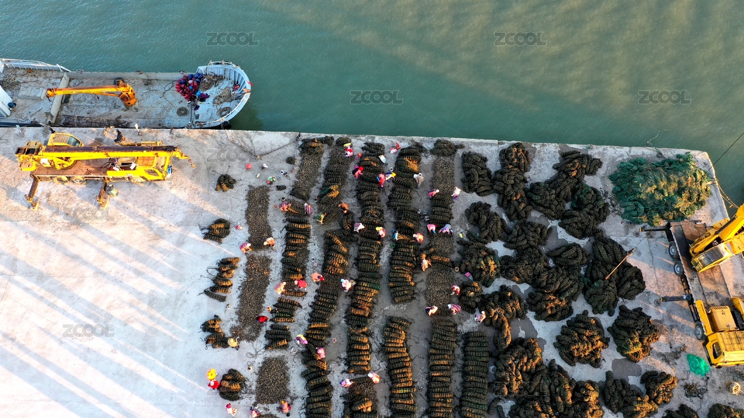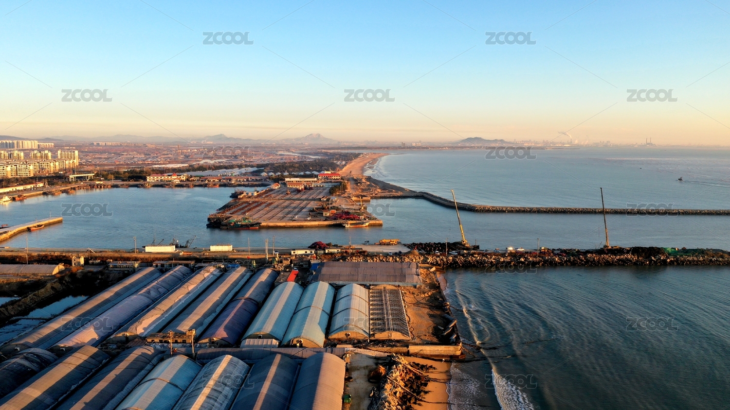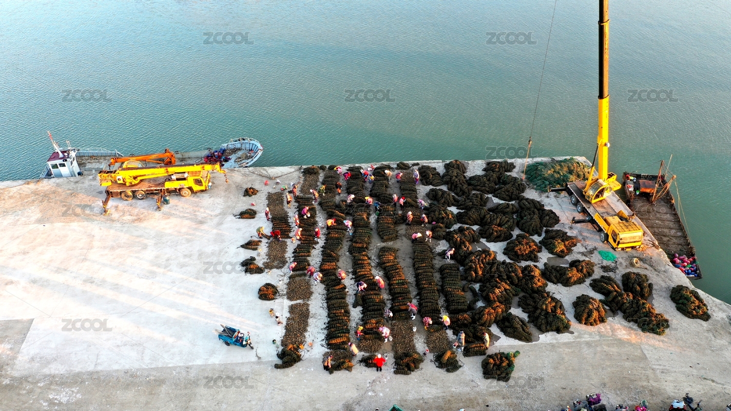 山東日照:朝陽下的漁港漁民采收牡蠣忙