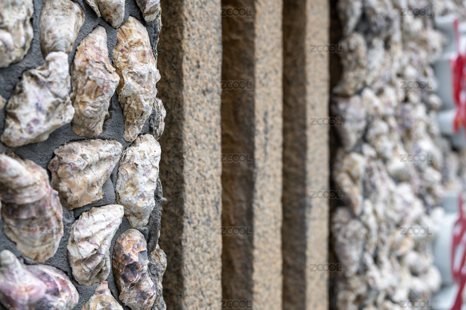 附著在石柱上的牡蠣群