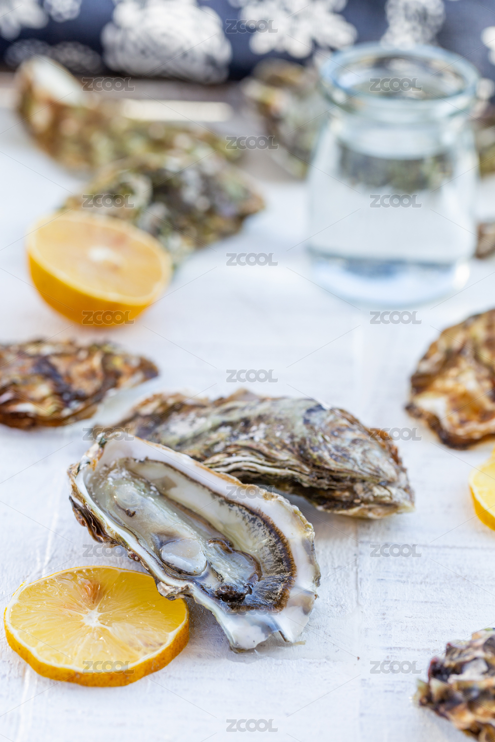 藍(lán)背景牡蠣殼