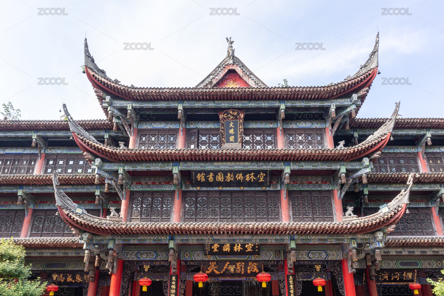 中國四川成都文殊院中式傳統(tǒng)建筑外景