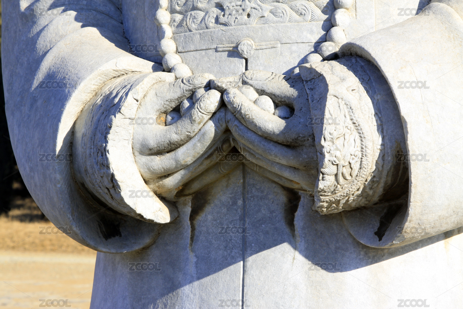 石雕人物雙手合十特寫