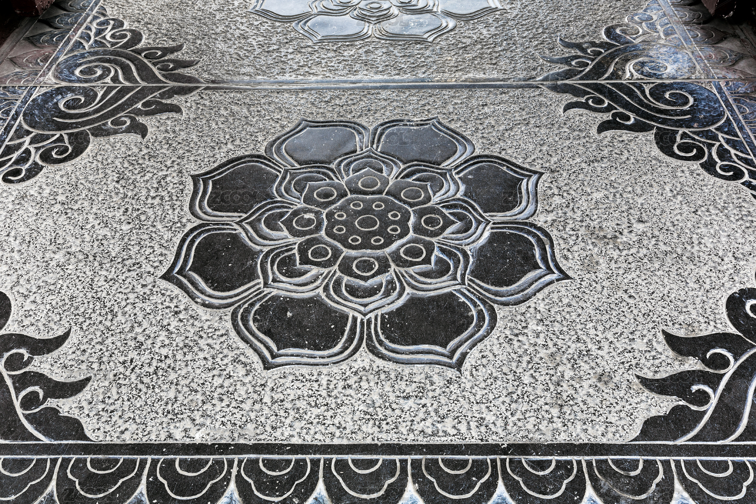 蓮花圖案石雕。,中國(guó)河南省洛陽(yáng)白馬寺地面