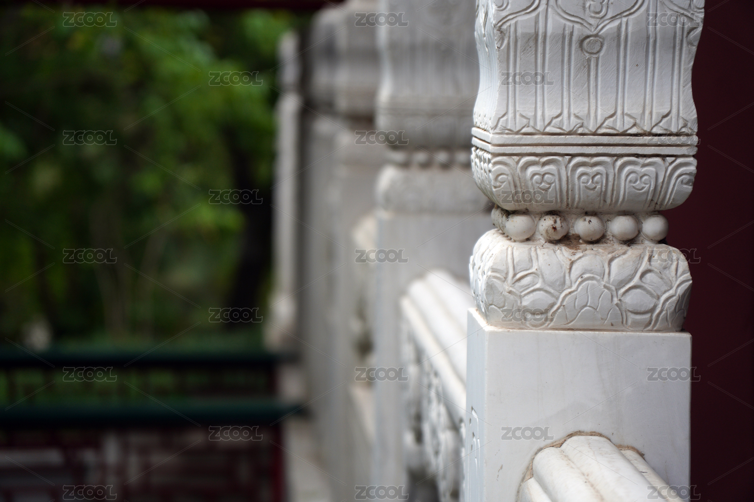北京園博園精美白色石雕欄桿特寫