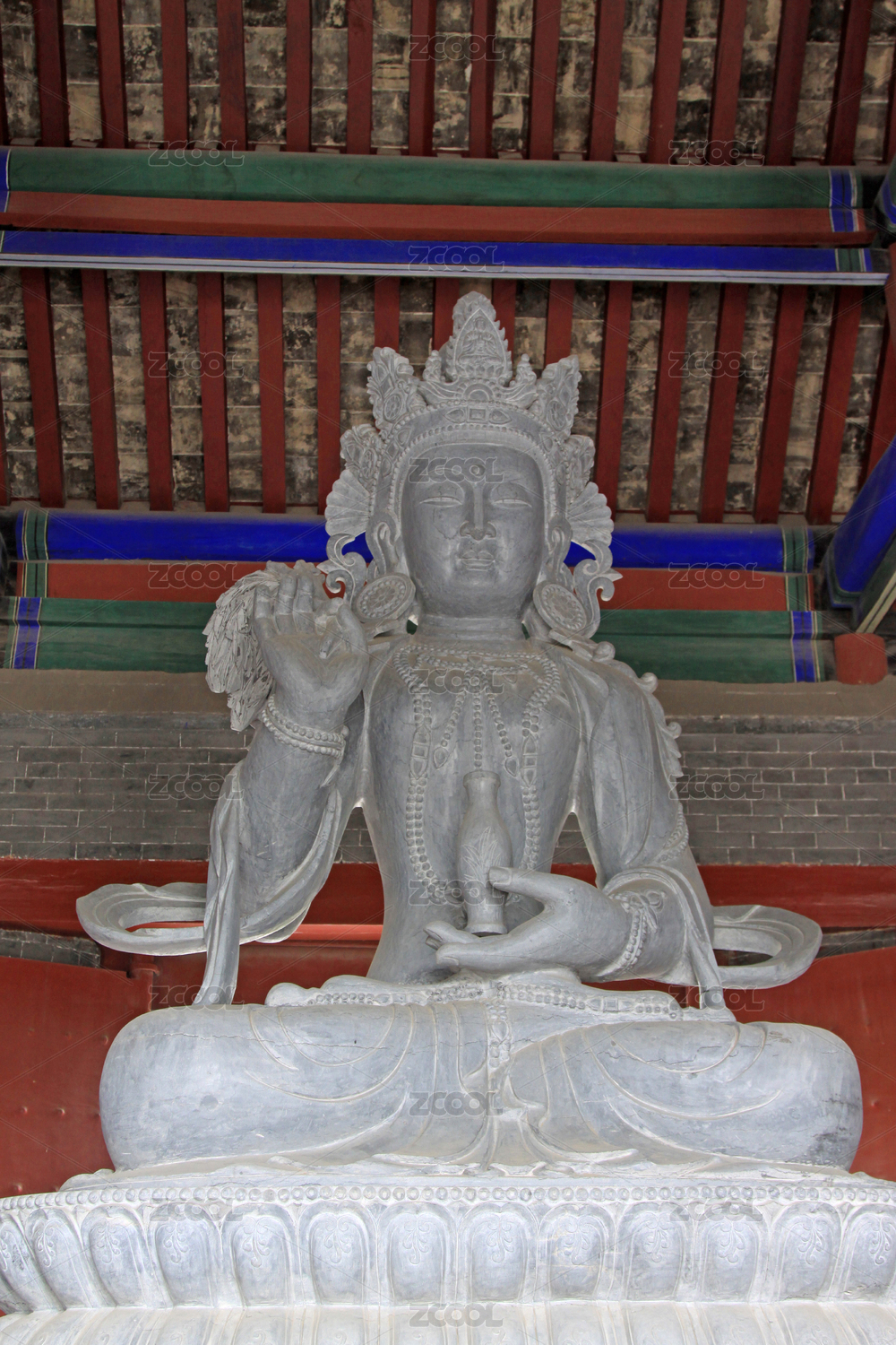 白色石雕佛像靜坐于殿內(nèi)