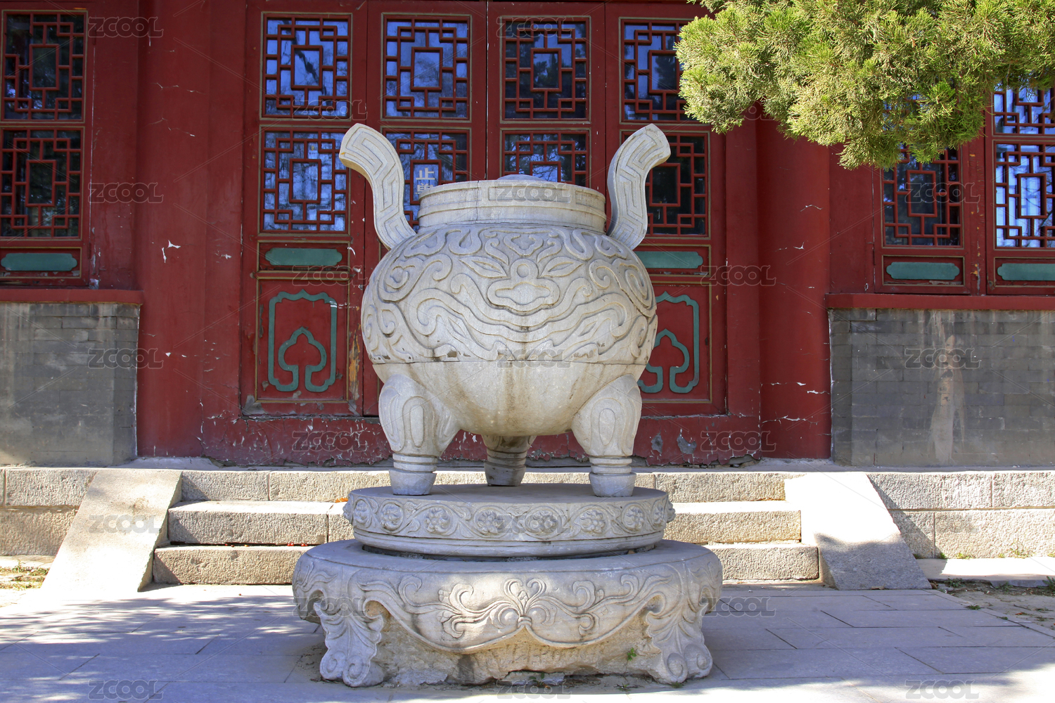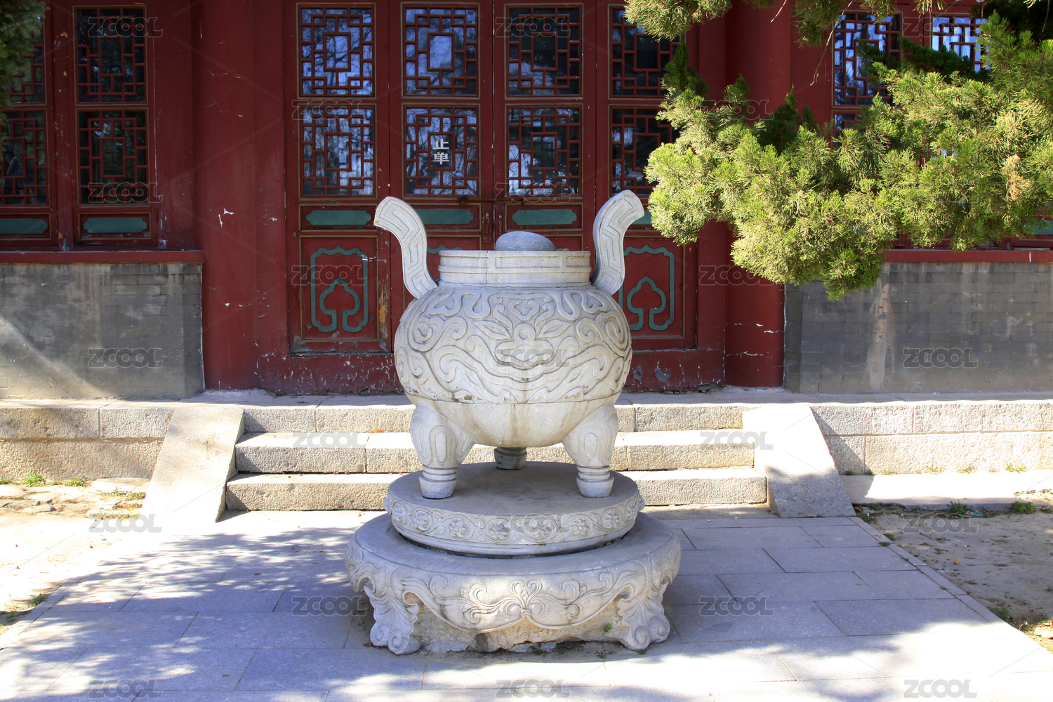 庭院中的石雕香爐