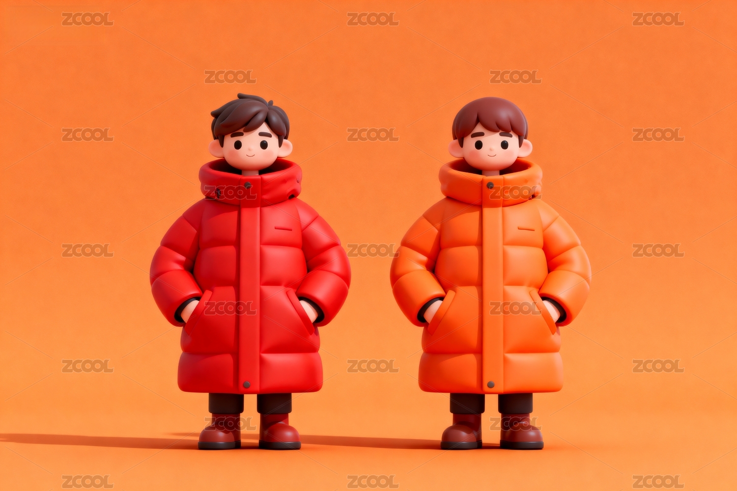 卡通人物穿冬衣站立
