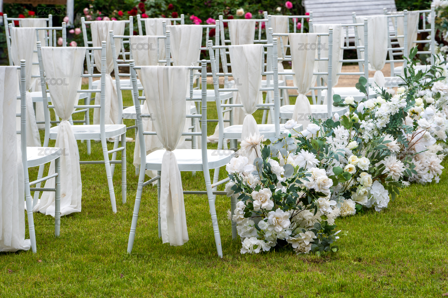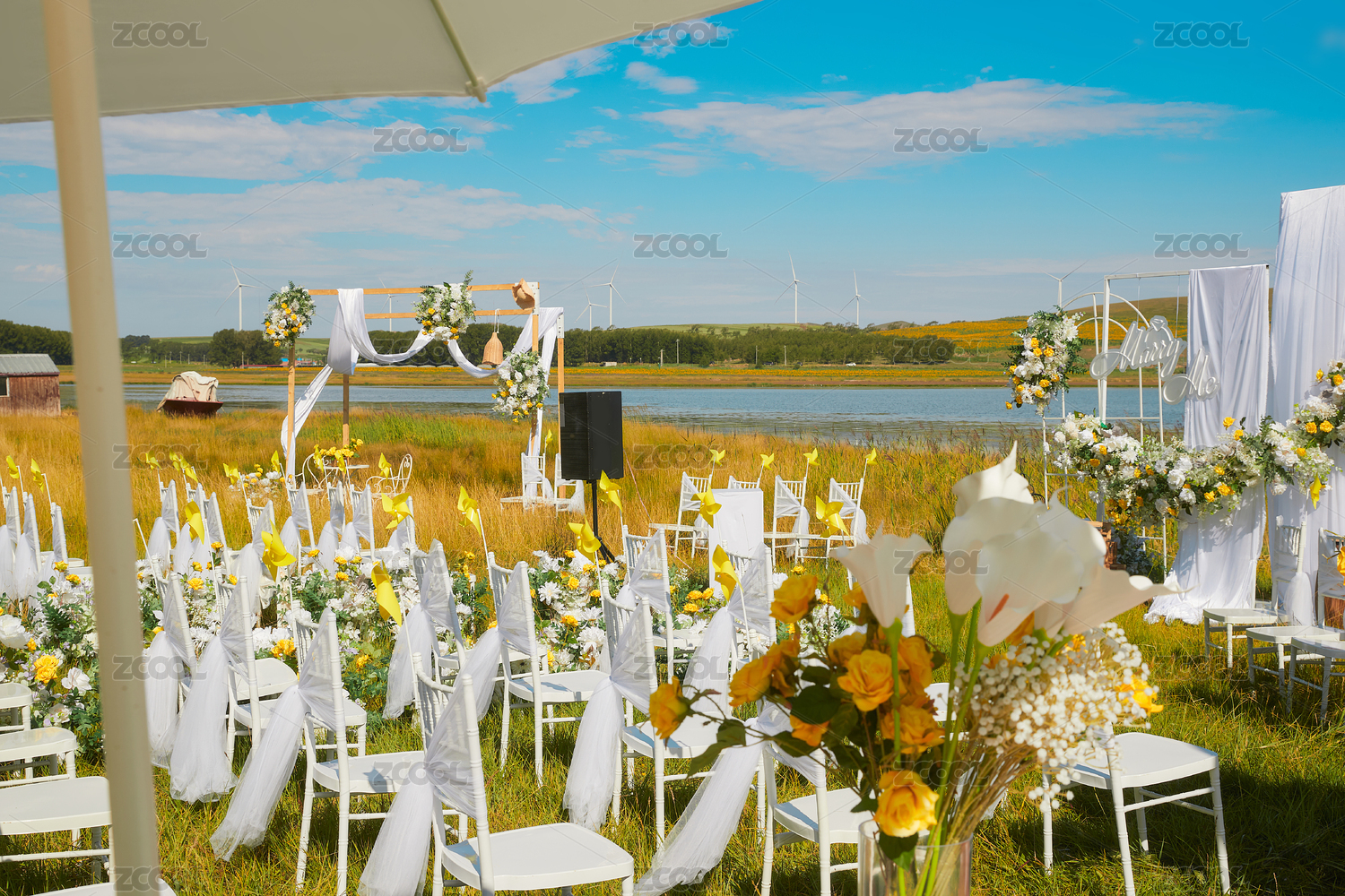 湖畔晴空下浪漫草坪婚禮的場地布置細(xì)節(jié)