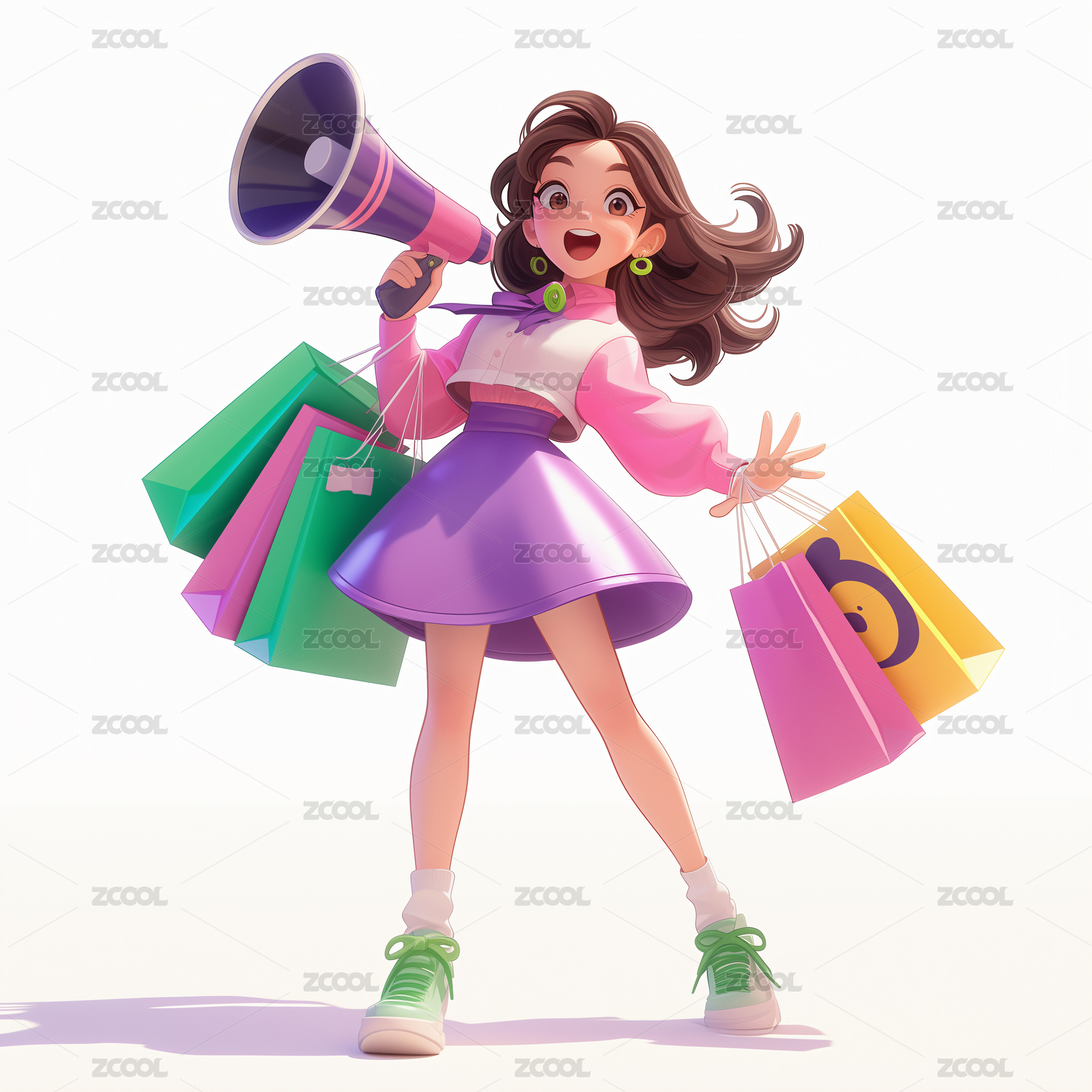 手拿喇叭提著購(gòu)物袋的少女