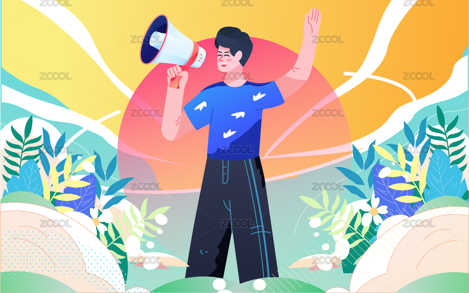 人物拿著喇叭大聲喊叫海報(bào)促銷(xiāo)營(yíng)銷(xiāo)活動(dòng)插畫(huà)