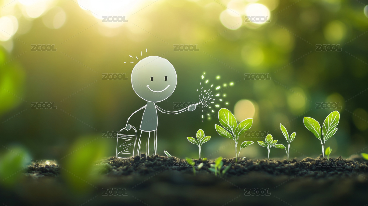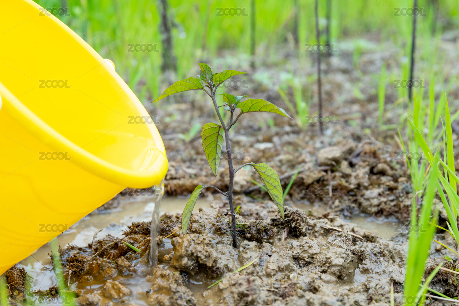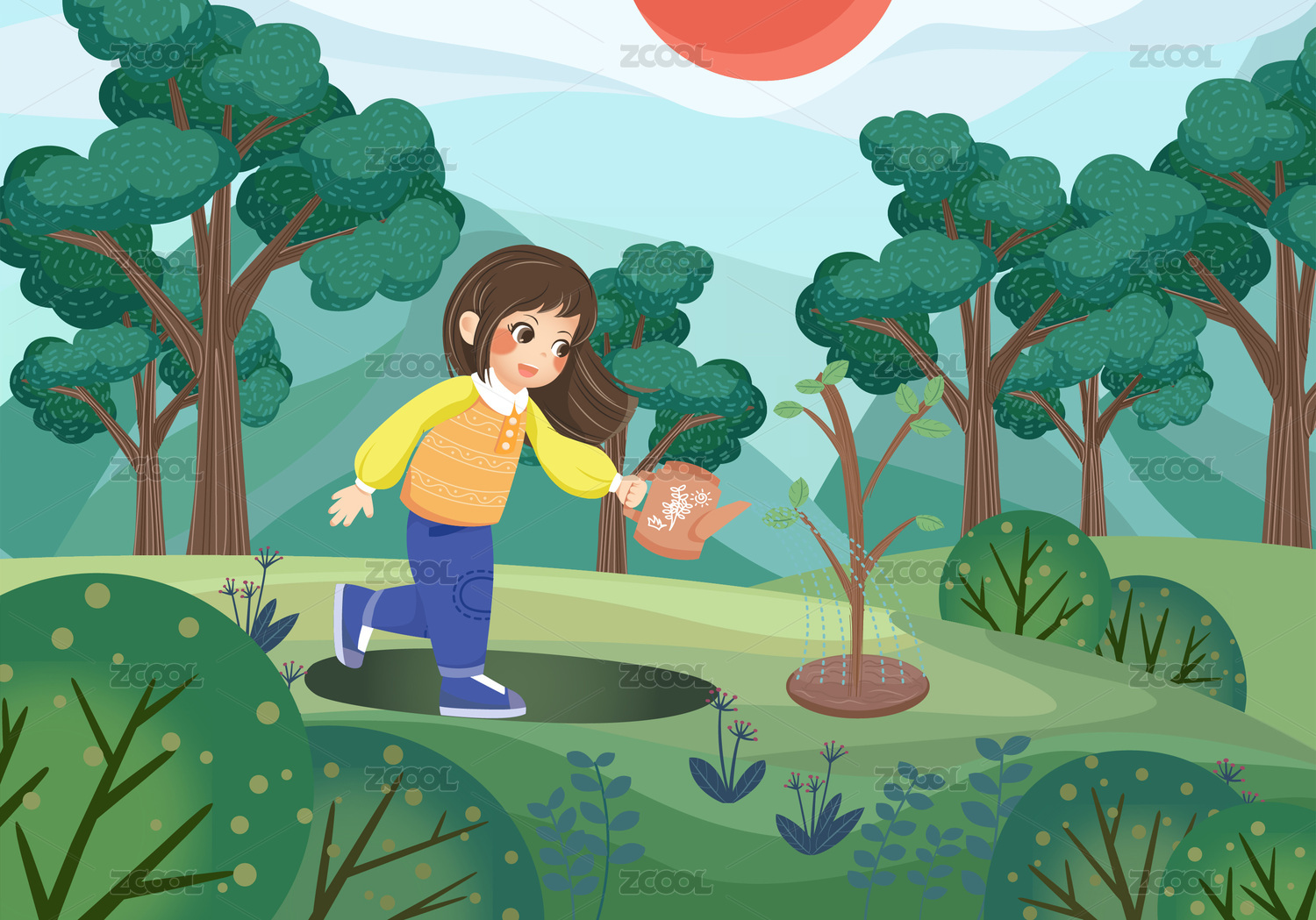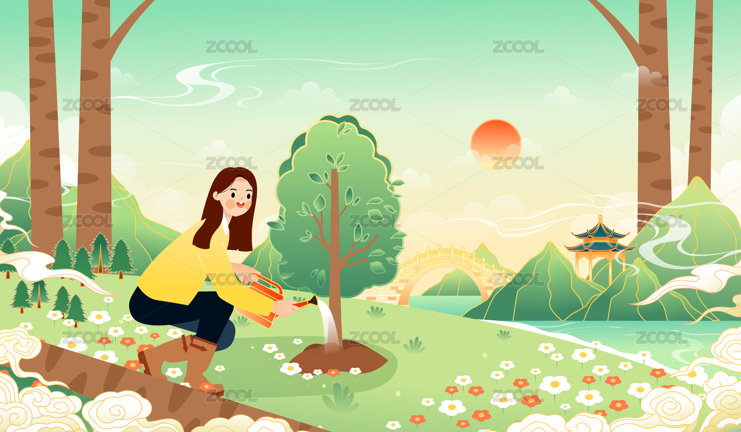 植樹節(jié)保護(hù)環(huán)境澆水種樹的青年