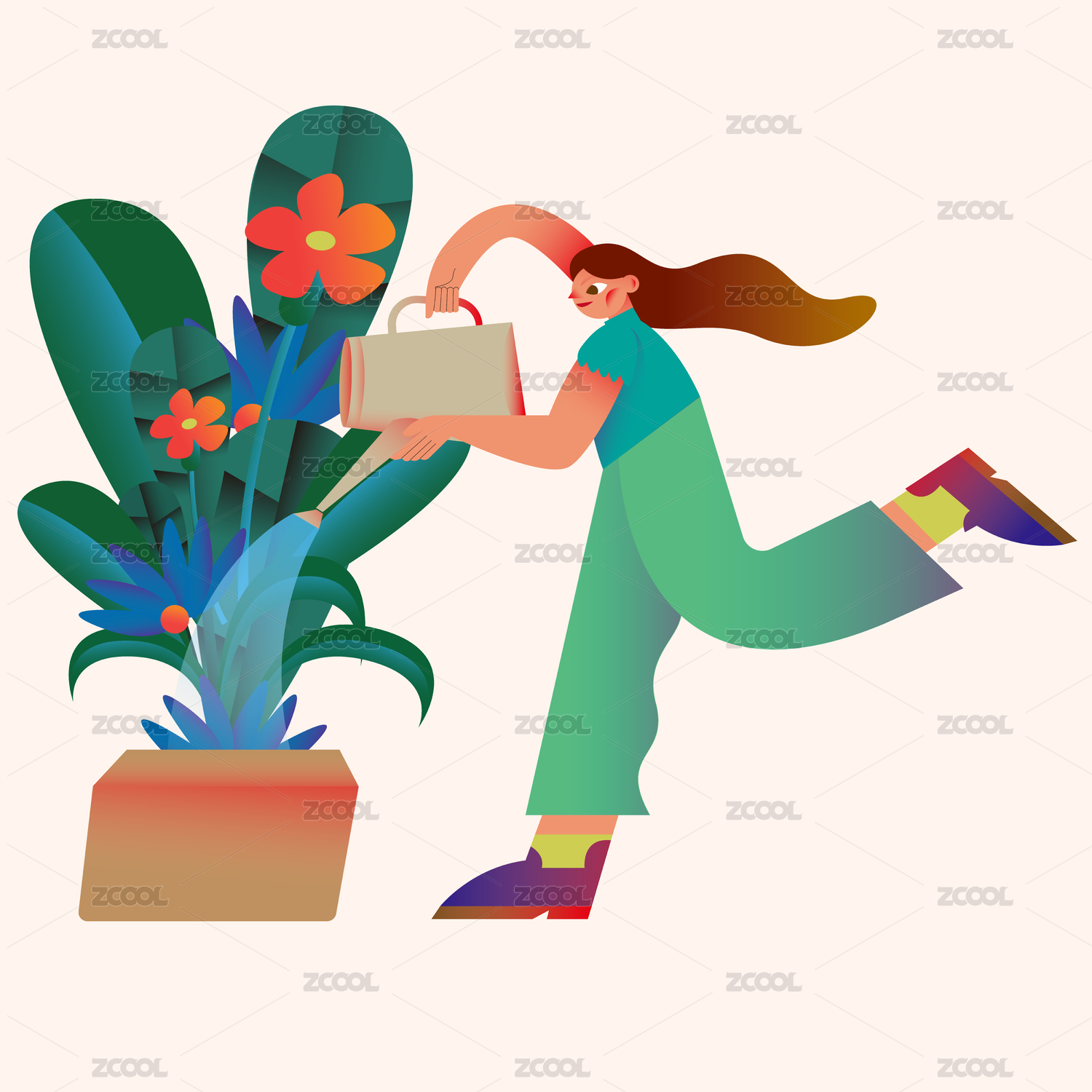 3d植樹節(jié)為小樹松土澆水小場(chǎng)景插畫元素