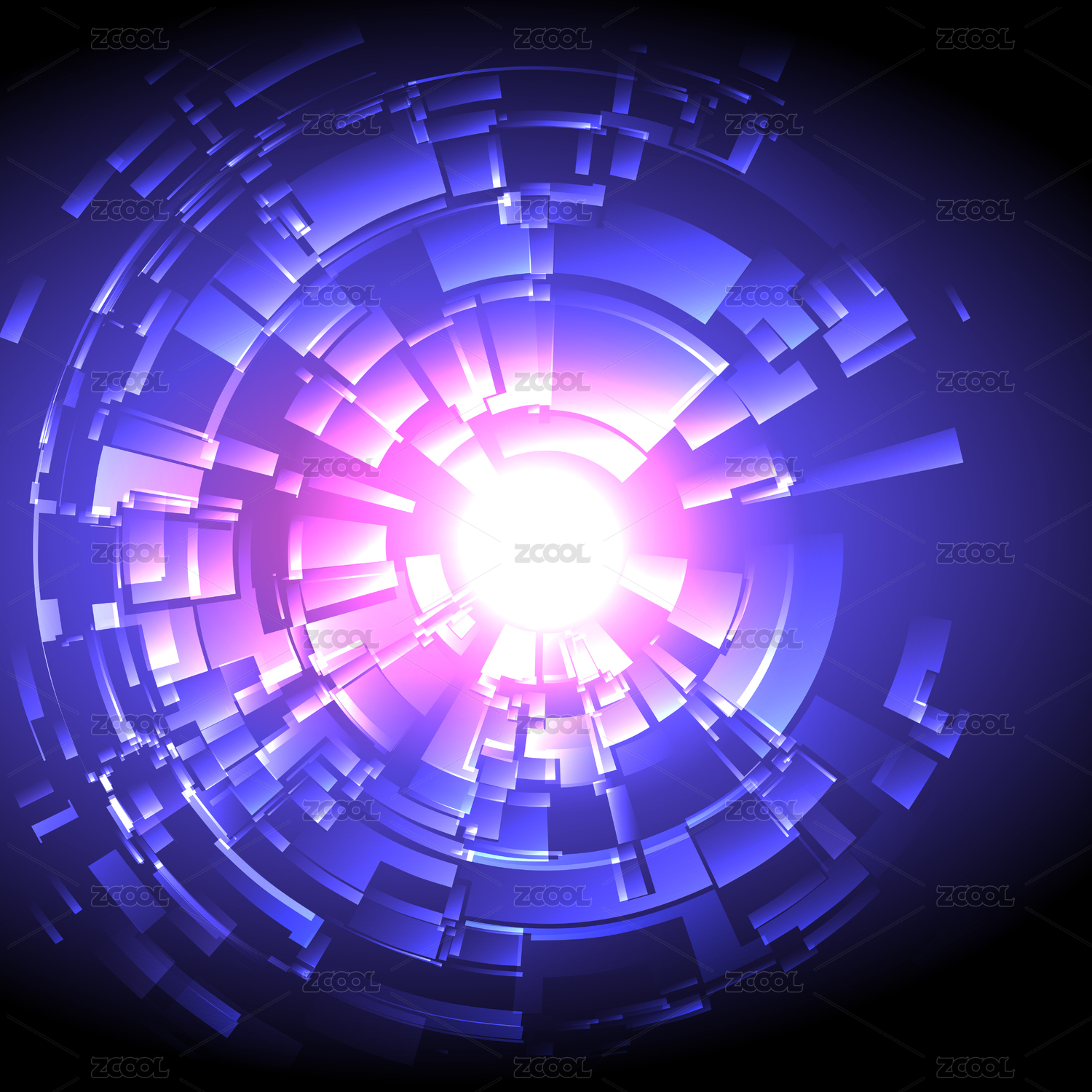 輻形抽象圖形、科技感矢量圖、透視效果、未來科技藍(lán)色背景。