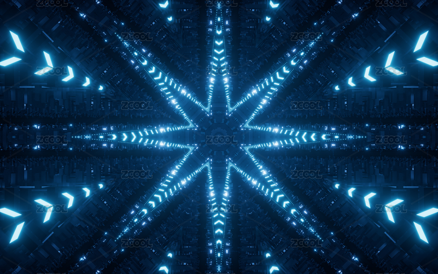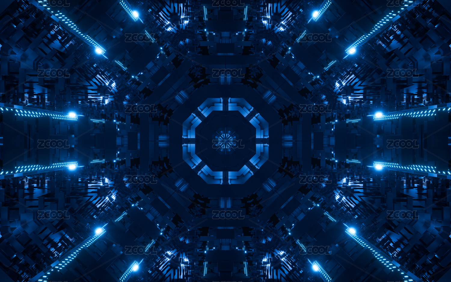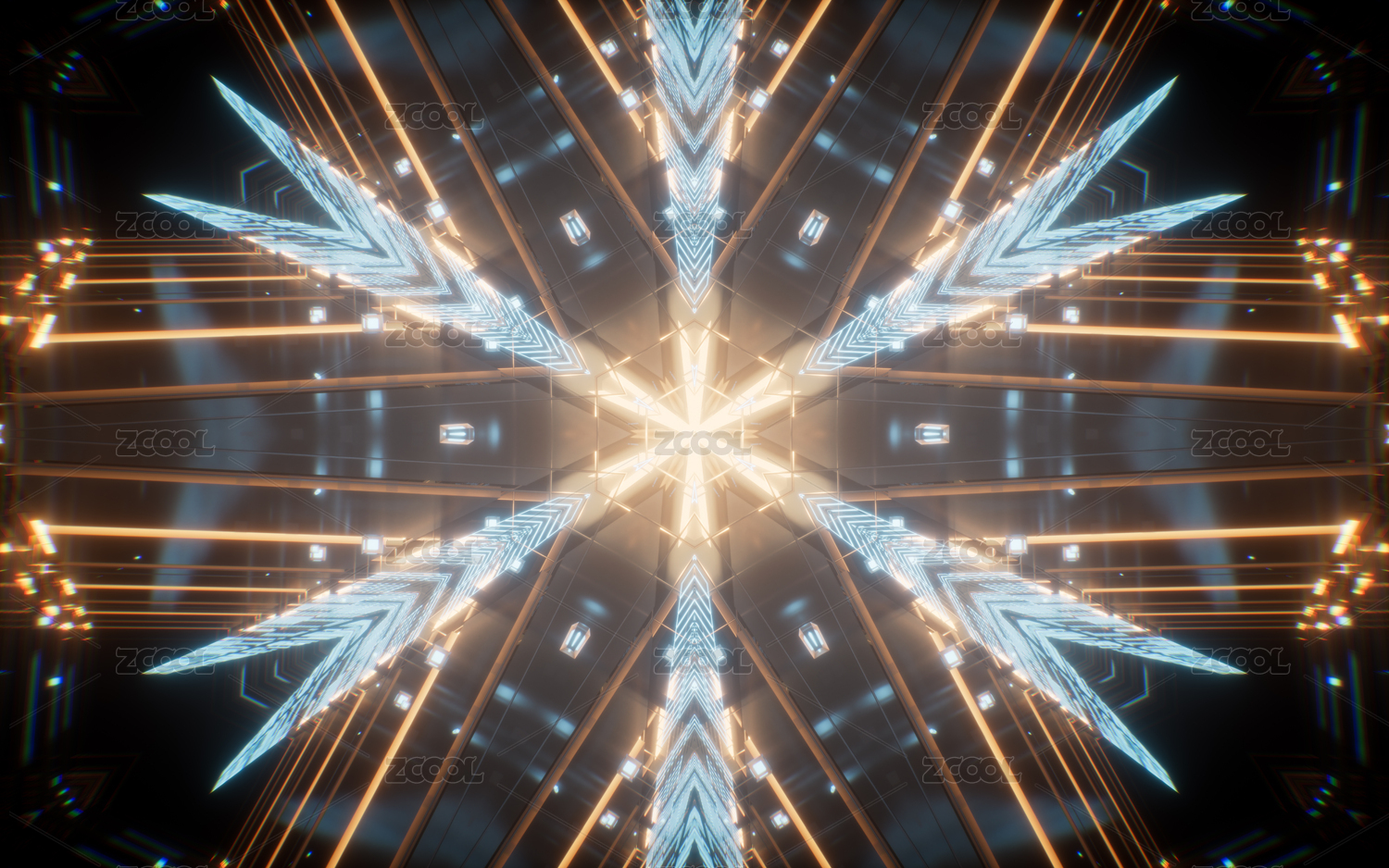 抽象科技霓虹燈光萬花筒隧道三維渲染