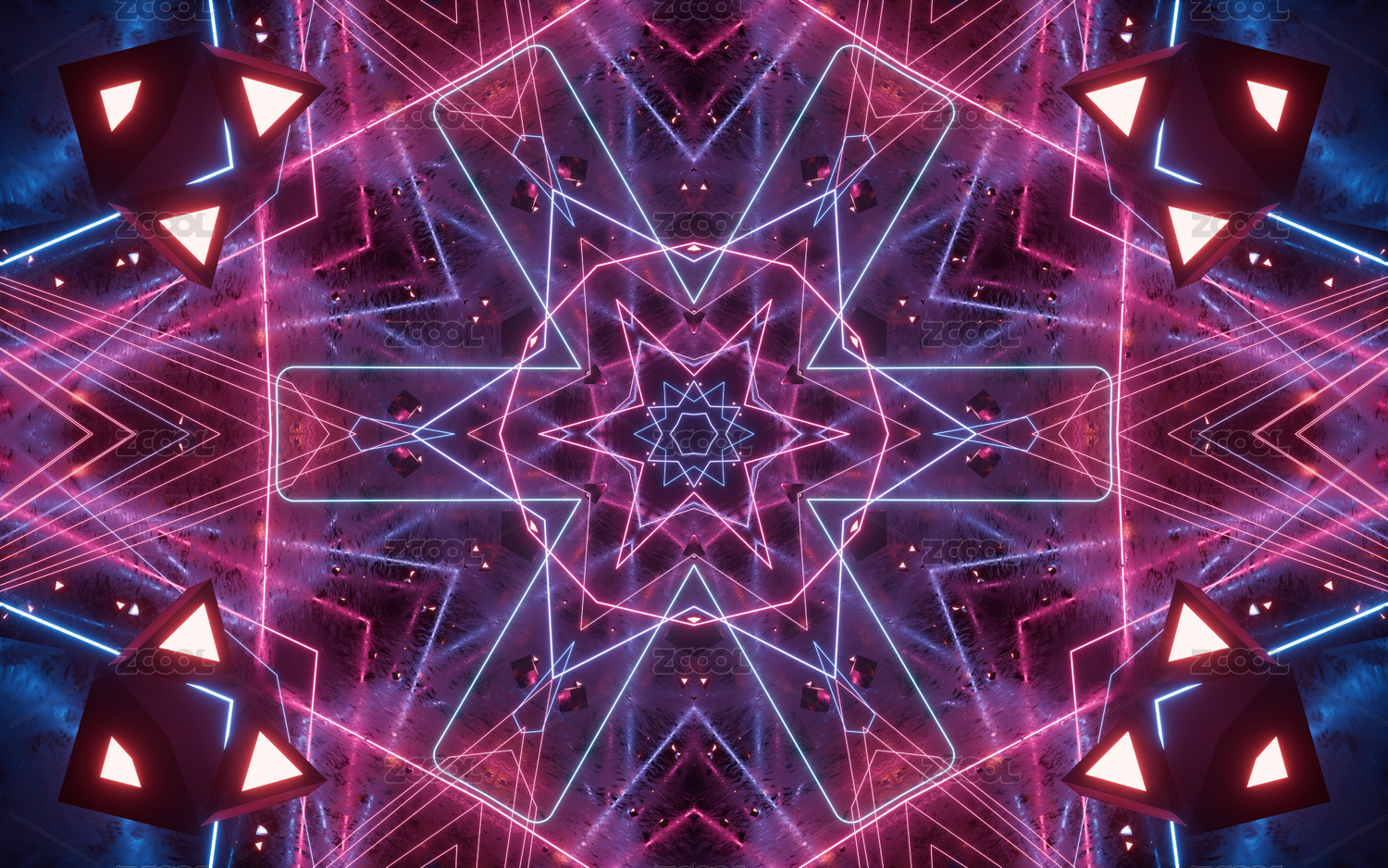 抽象霓虹燈光萬花筒背景三維渲染