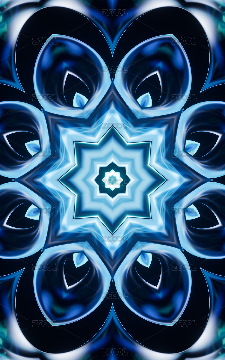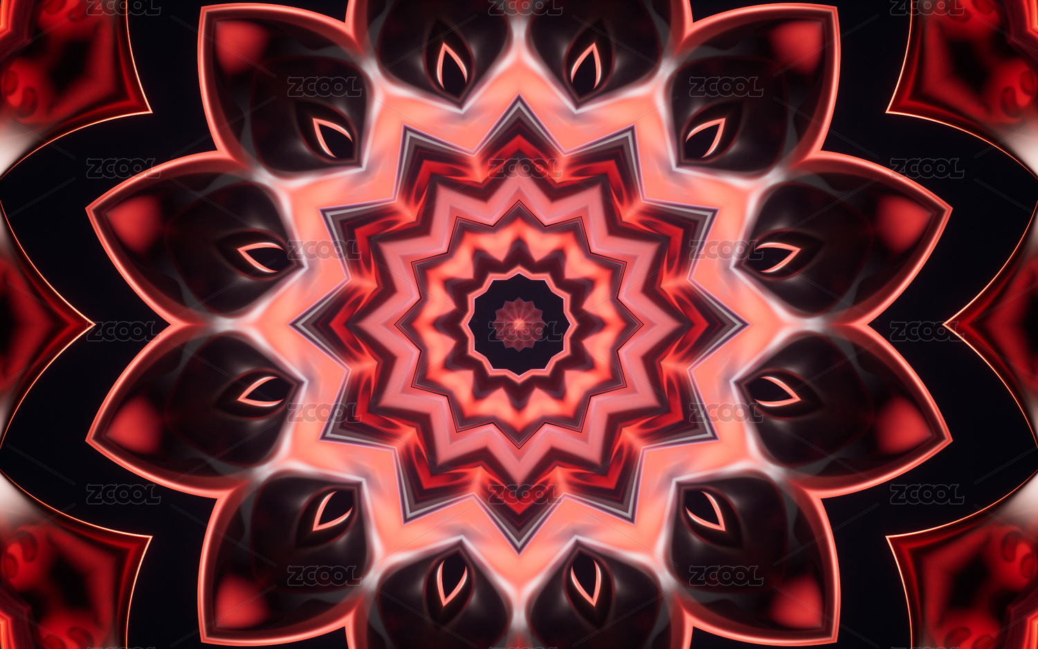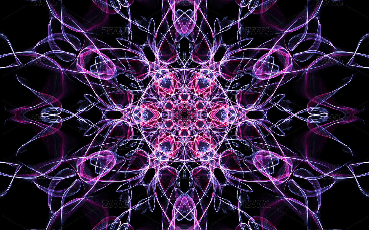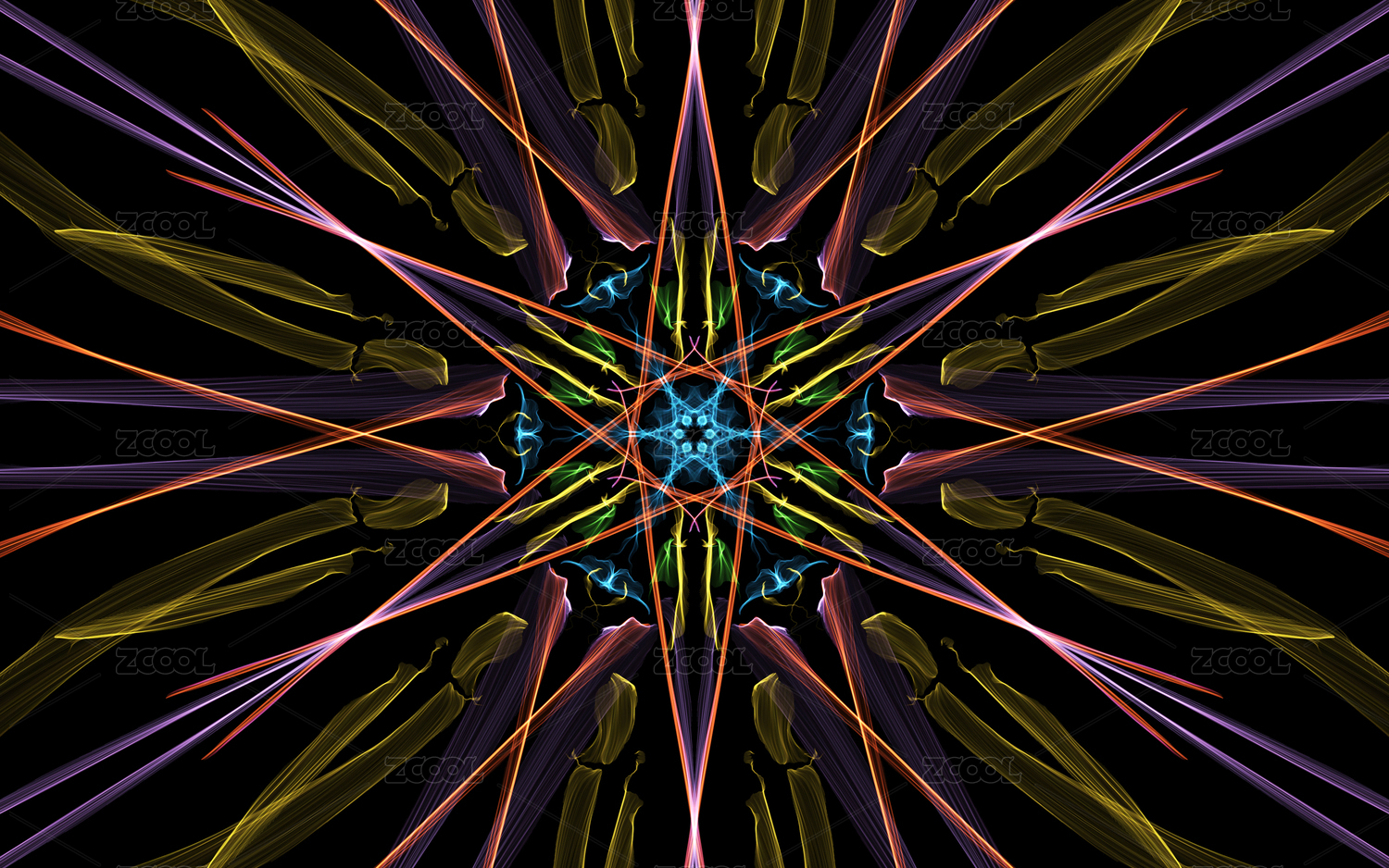 發(fā)光熒光的萬花筒花瓣圖案 對(duì)稱空間紋理