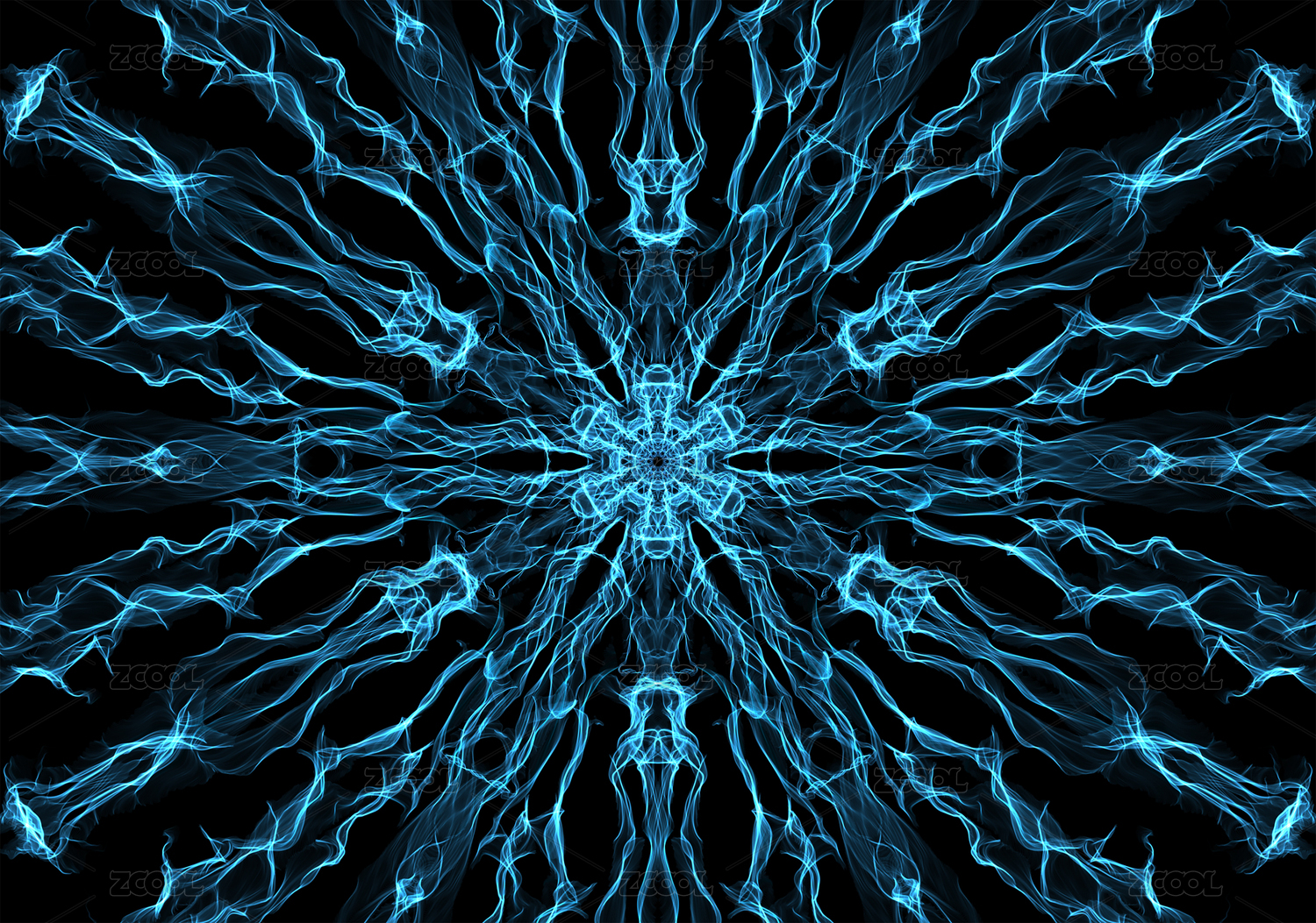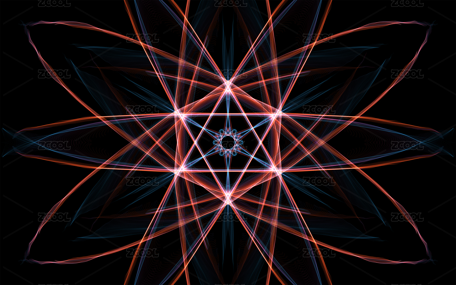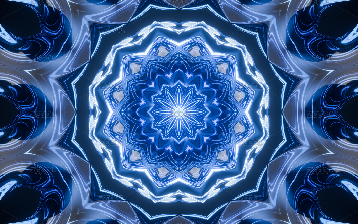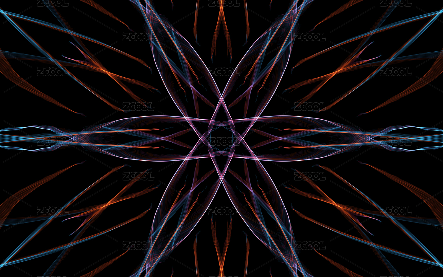 發(fā)光熒光的萬花筒花瓣圖案 對(duì)稱空間紋理
