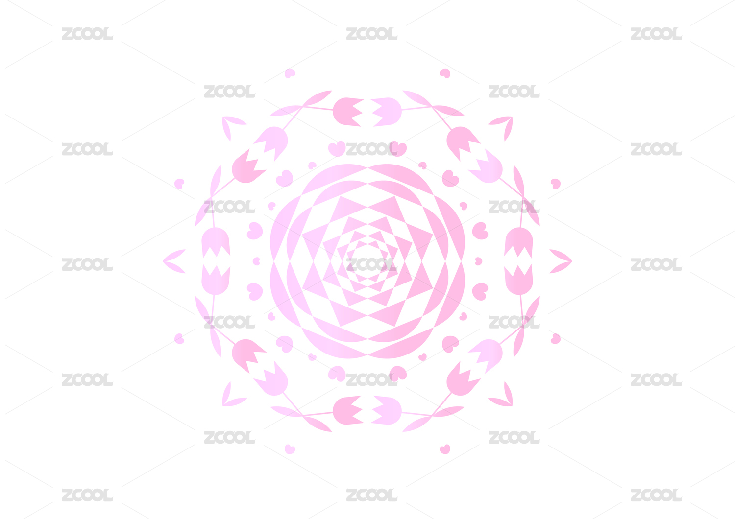 矢量愛心郁金香花瓣萬花筒圓形插圖