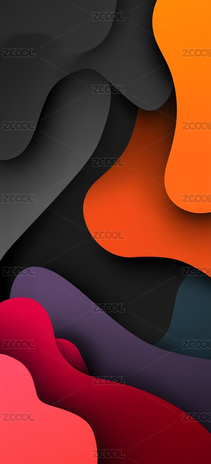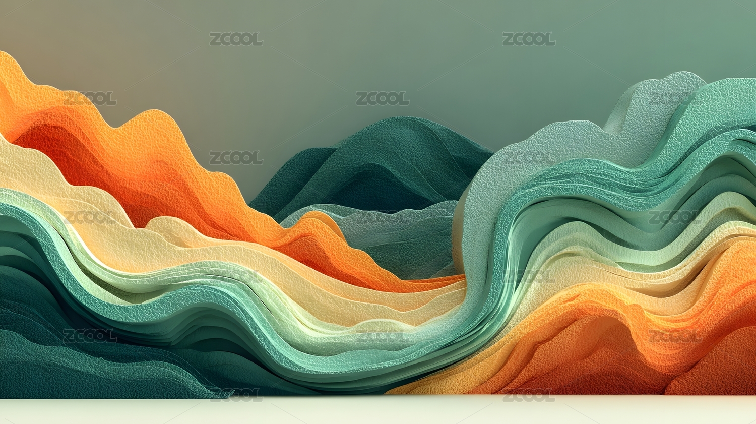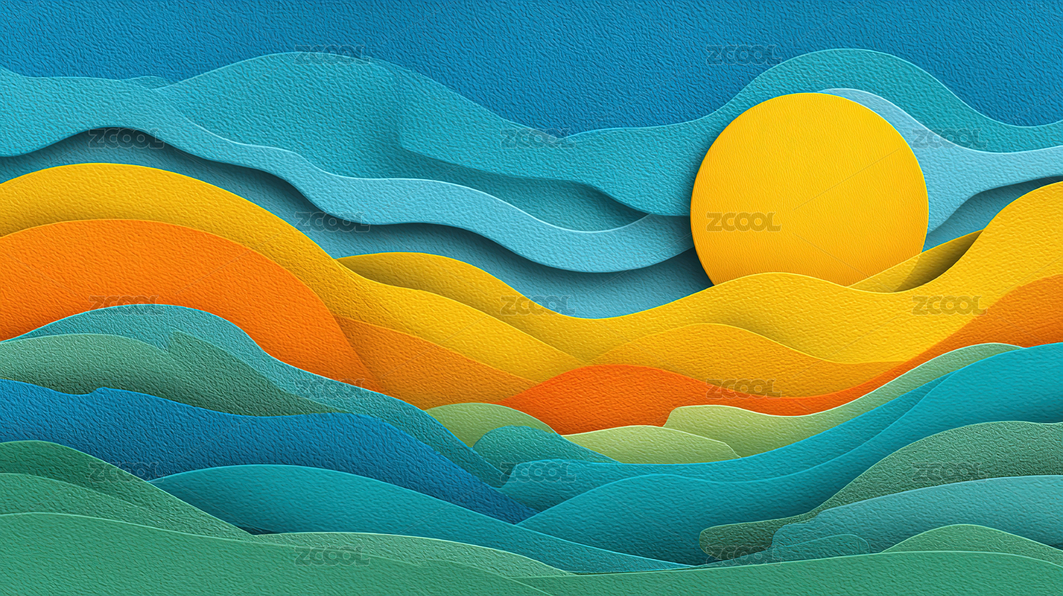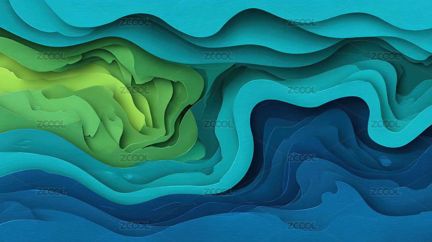 多層疊色剪紙風立體流動曲線現代藝術背景圖