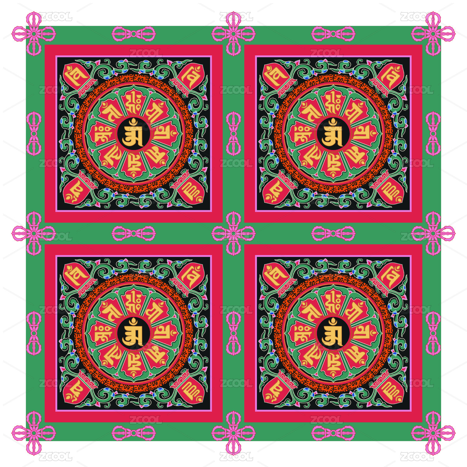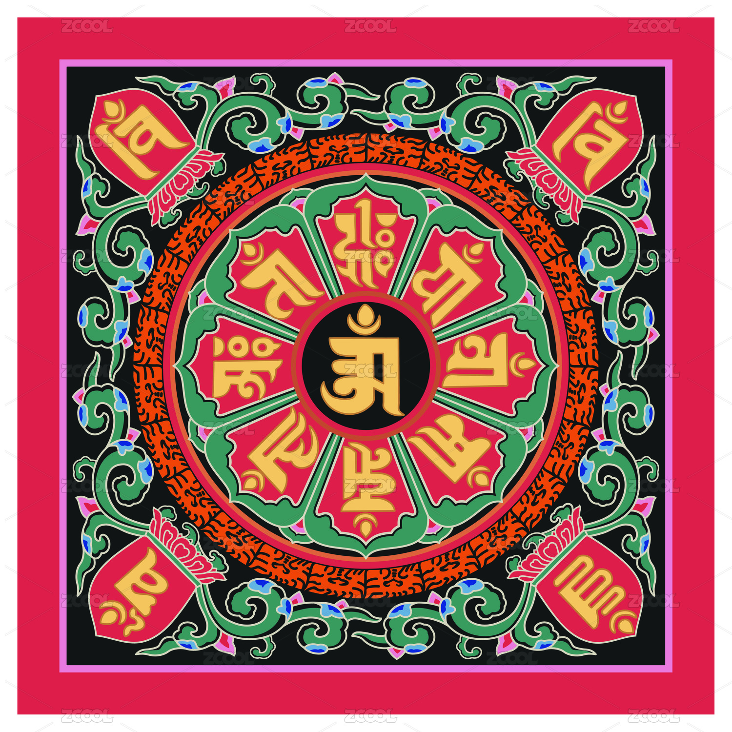 矢量圖大覺寺清代佛八寶天花彩繪