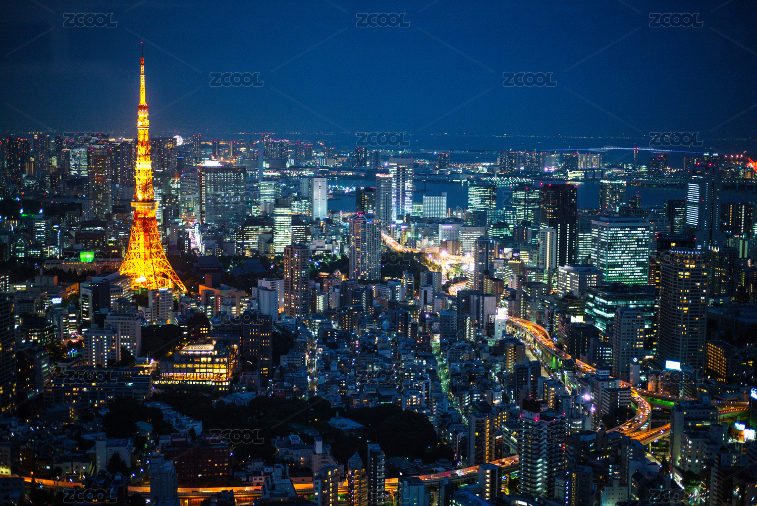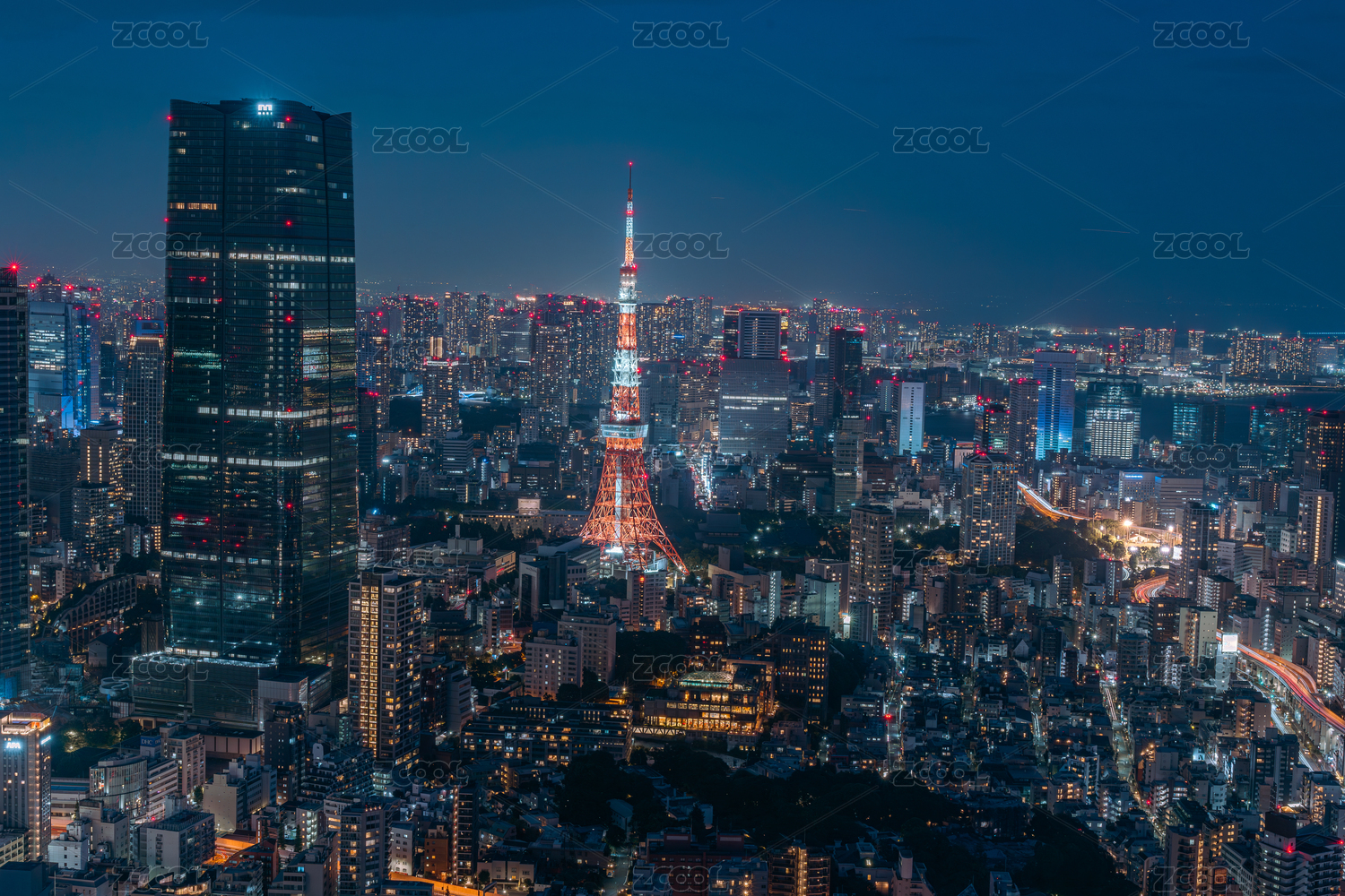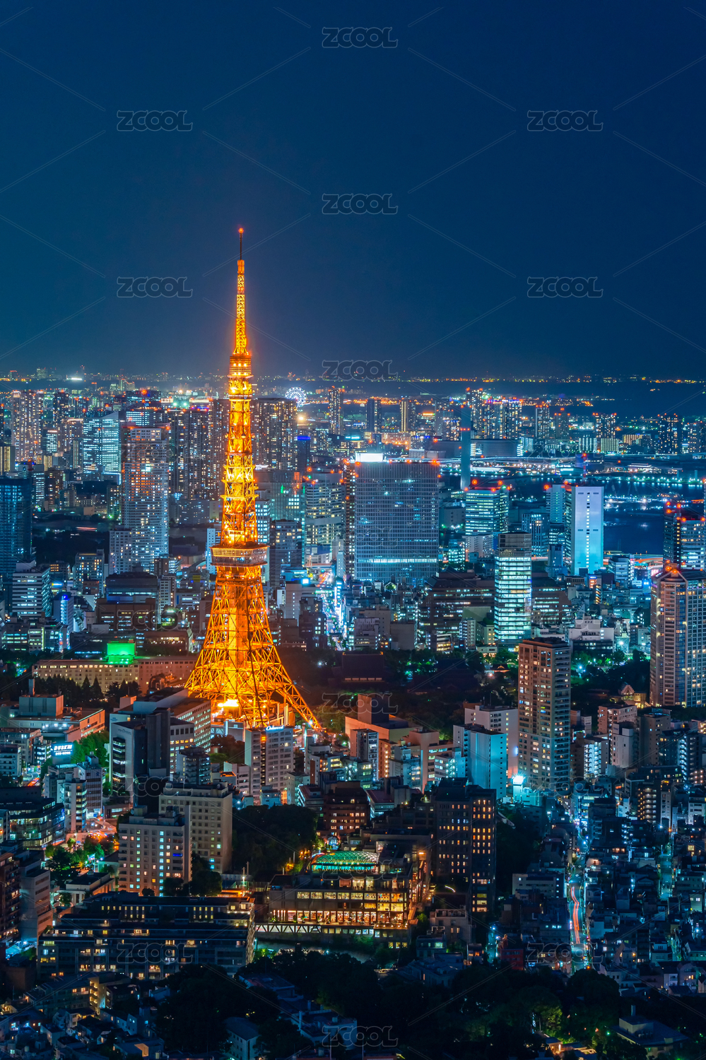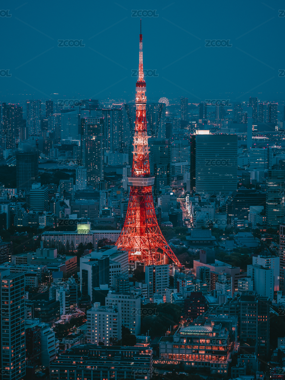 亞洲日本東京市地標(biāo)建筑東京塔夜景城市風(fēng)光