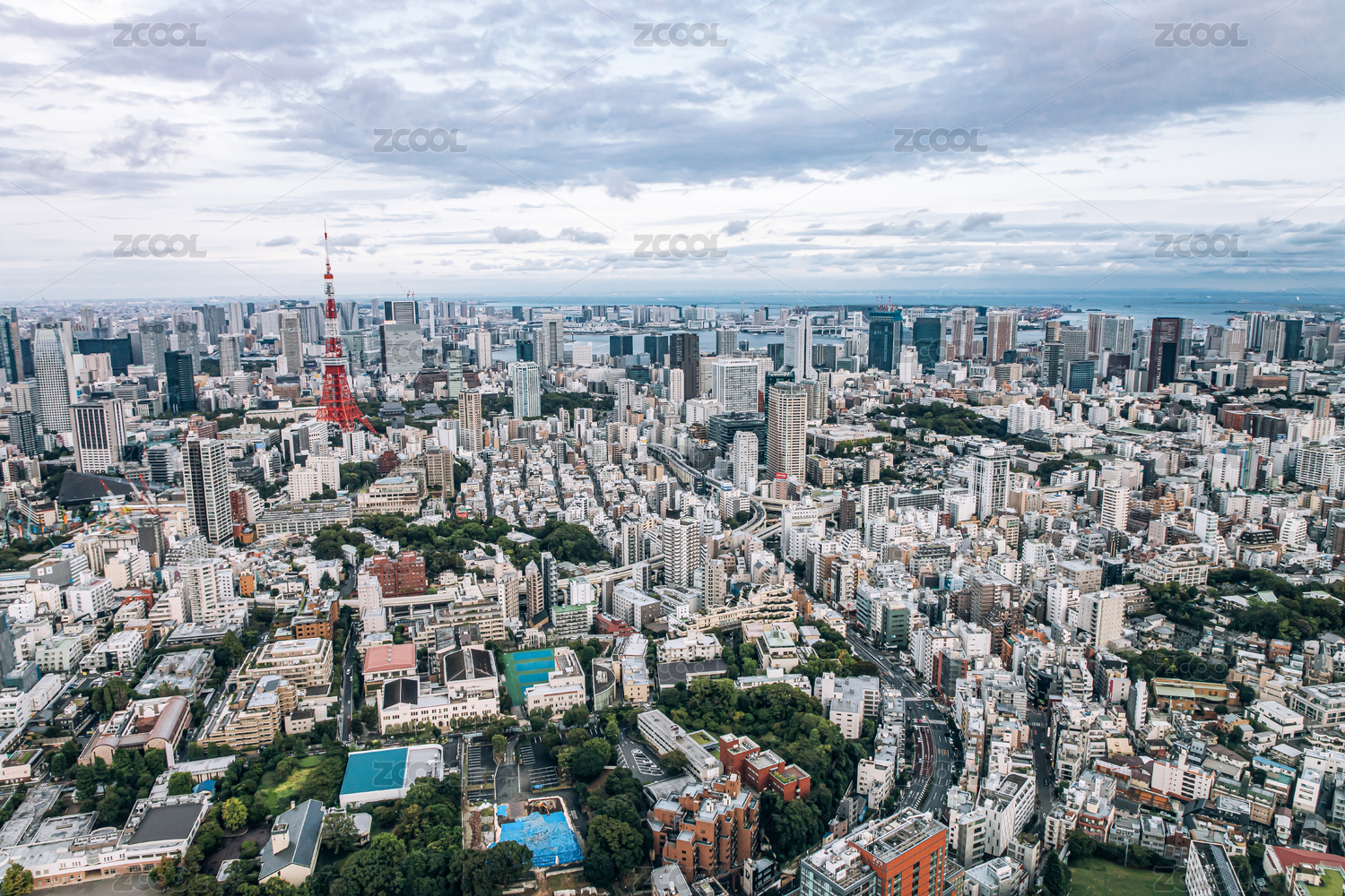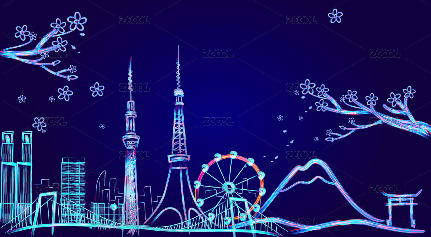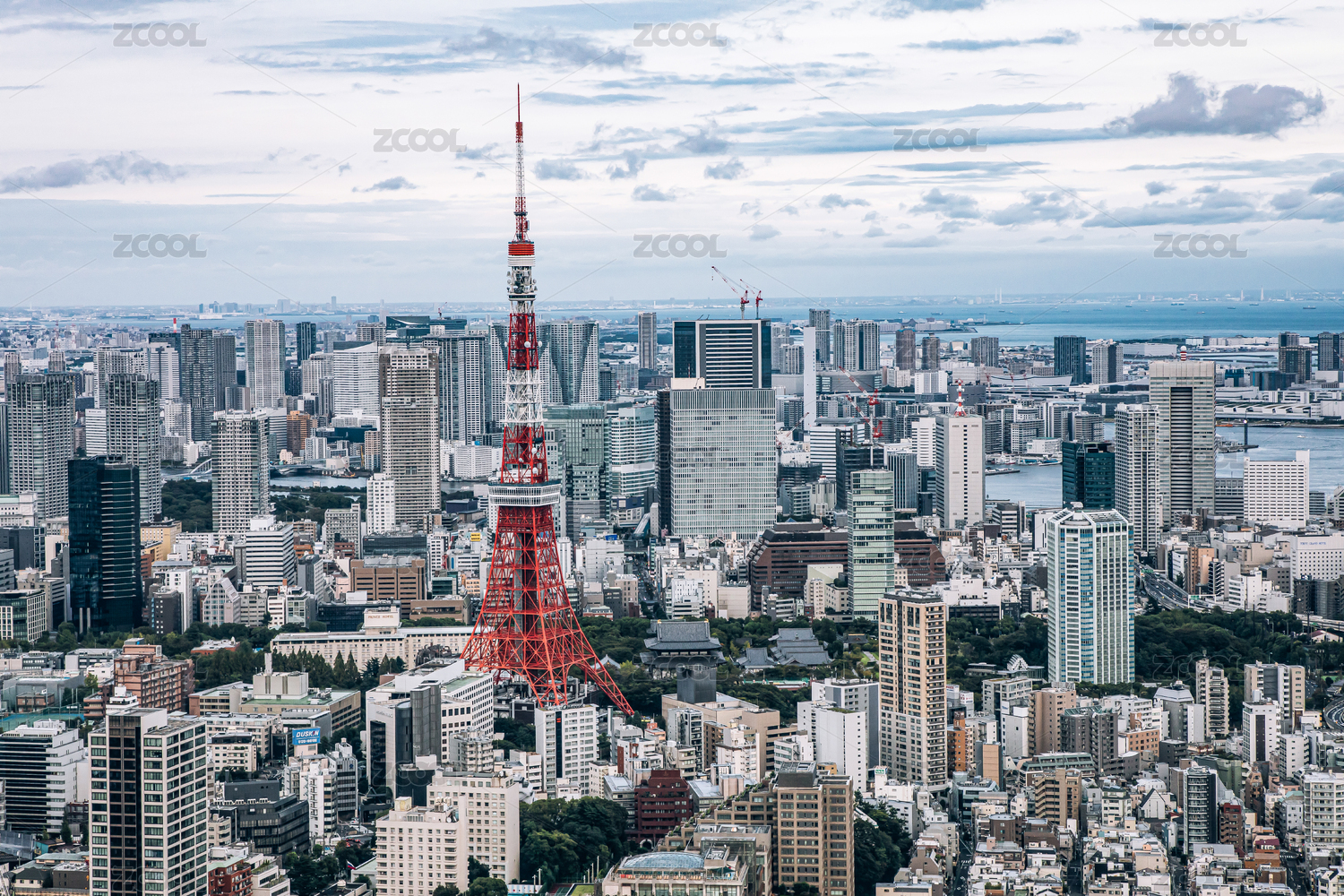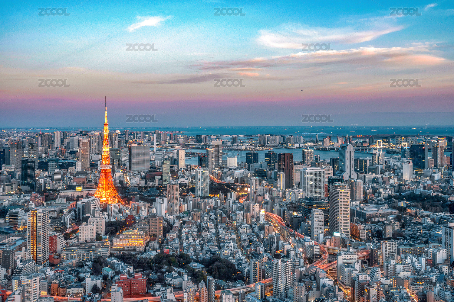 亞洲日本東京市地標(biāo)建筑東京塔夜景城市風(fēng)光