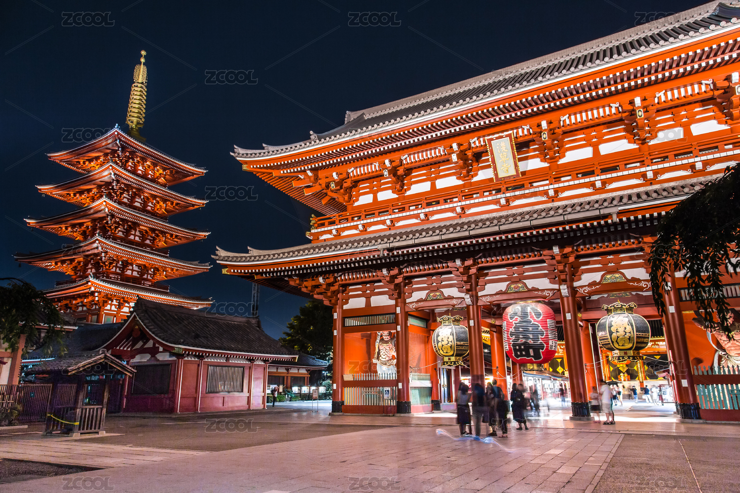 日本東京淺草寺內(nèi)的五重塔和寶藏門夜景