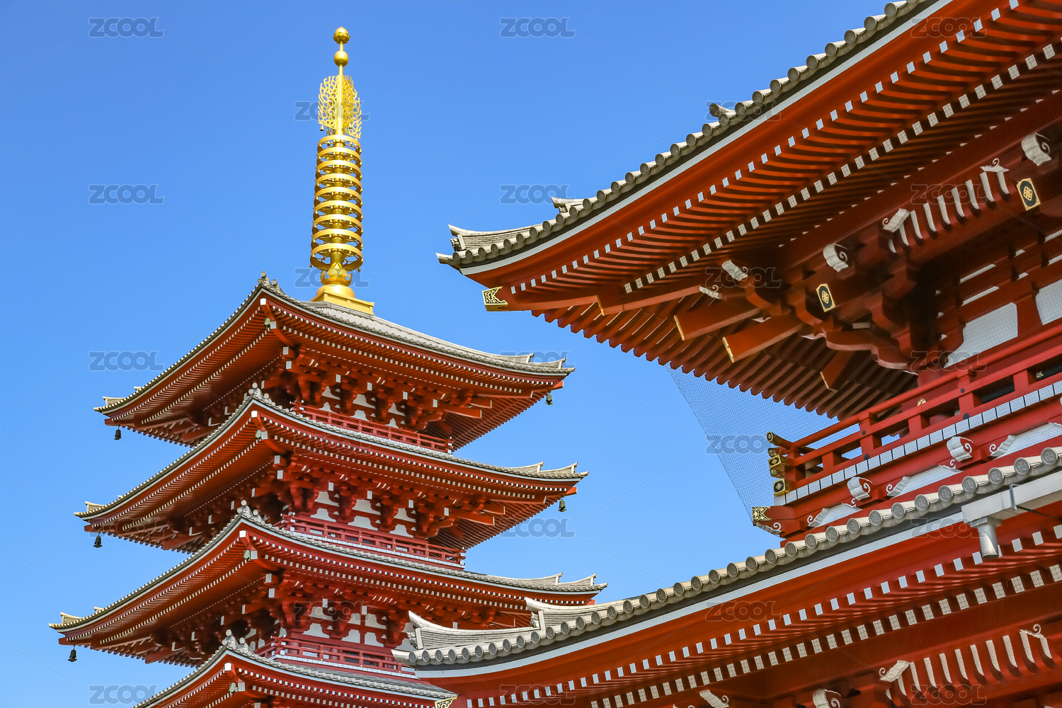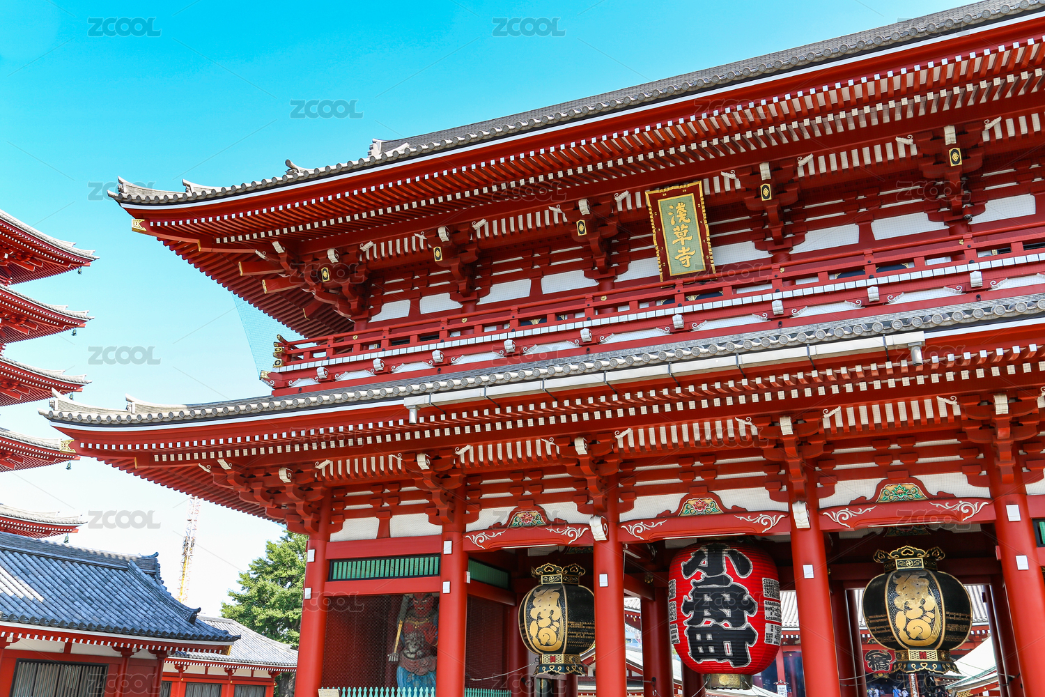 日本東京淺草寺內(nèi)的五重塔和寶藏門局部