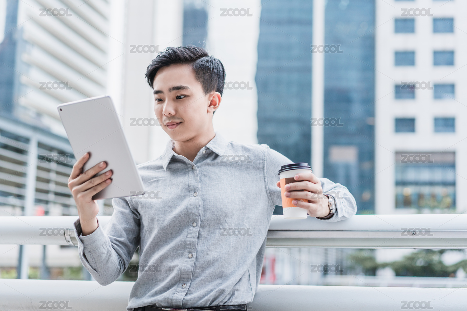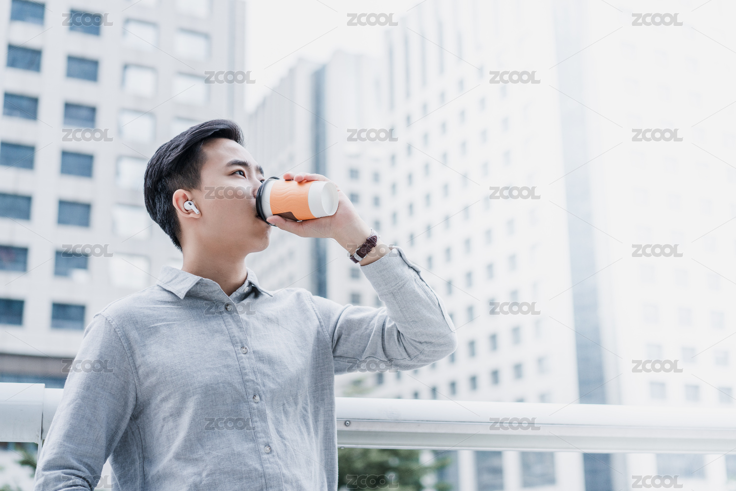 商務(wù)人士在戶外喝杯裝咖啡