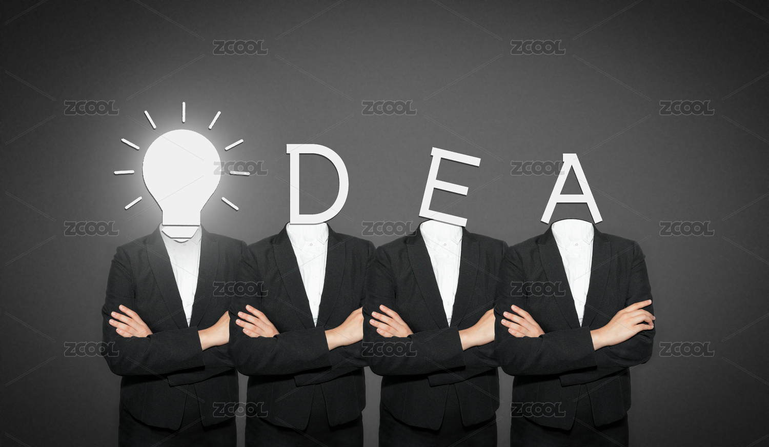 商業(yè)商務(wù)人士精英白領(lǐng)職場英雄高效的進行團隊合作辦公工作創(chuàng)意靈感想象力想法燈泡合成概念
