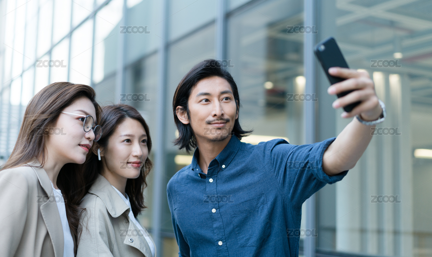 商務(wù)人士站在一起拍合照